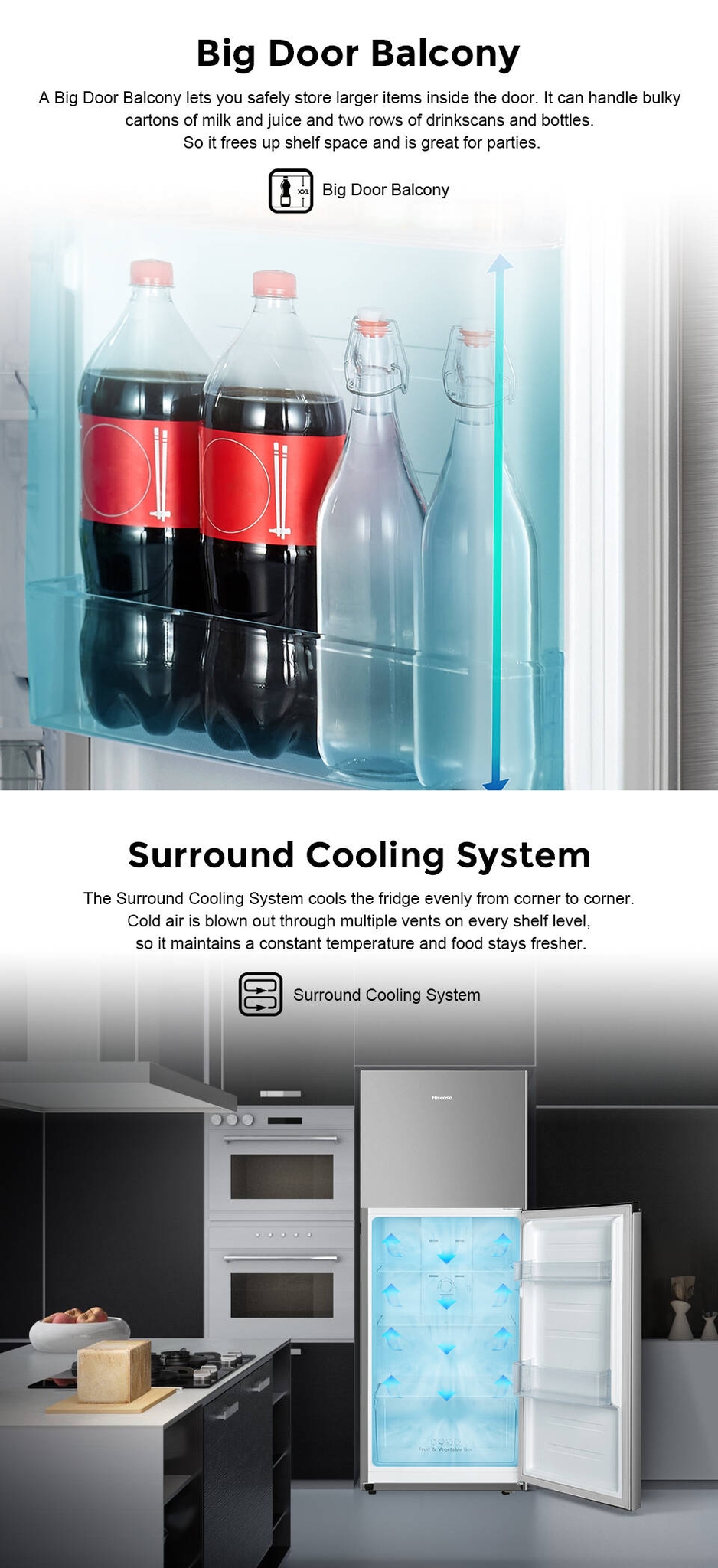 Provides consistent cold air distribution throughout each compartment maintaining ideal storing temperatures. Thanks to the even distribution of cold air achieved by the Hisense Multi Air Flow System, an optimum temperature is consistently maintained throughout your fridge freezer – keeping food chilled to perfection no matter where it is placed.