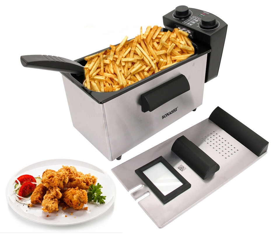 Experience the convenience and efficiency of the Sonashi Deep Fryer 5011. Designed with a generous 3L capacity and a sleek stainless steel housing, this fryer combines style with functionality. The adjustable thermostat with a light indicator allows you to select the perfect temperature for your frying needs, ensuring consistent and delicious results every time. The large frying basket provides ample space for cooking larger batches of food. The removable enameled inner pan simplifies the cleaning process, while the immersed oil heating element guarantees fast and efficient heating. Enjoy added convenience with the 30-minute timer function and the lid featuring an easy viewing window, allowing you to keep an eye on your food without lifting the lid. Safety is a top priority with overheat protection and cool touch/heat resistant handles, providing ultimate protection during operation. All parts, except the heating elements, are dishwasher safe for easy cleaning. The non-slip feet ensure stability during use, making this deep fryer a reliable addition to your kitchen. Power requirements of AC 220-240V ~ 50/60Hz 2100W make it suitable for use in various settings.