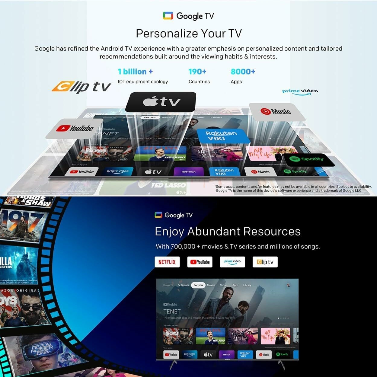 The TV is powered by Google's Android TV operating system, providing access to a wide range of apps and services available through the Google Play Store. This allows you to enjoy various content, including streaming services, games, and more, on your UHD TV.