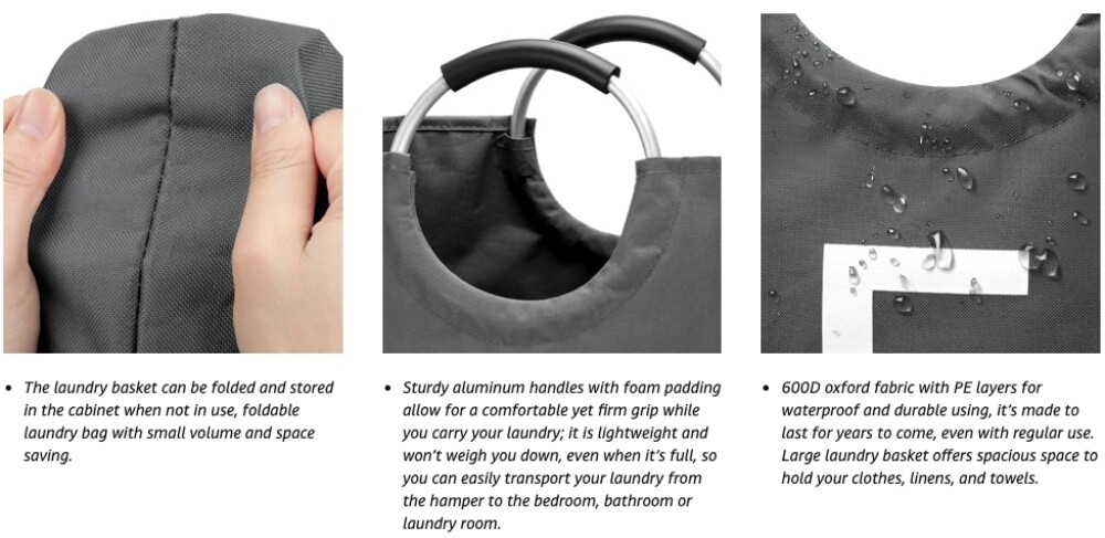 Ergonomic handle with soft sponge padding ensures comfortable grip when moving laundry between rooms.