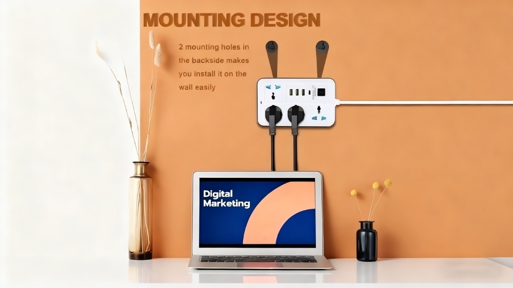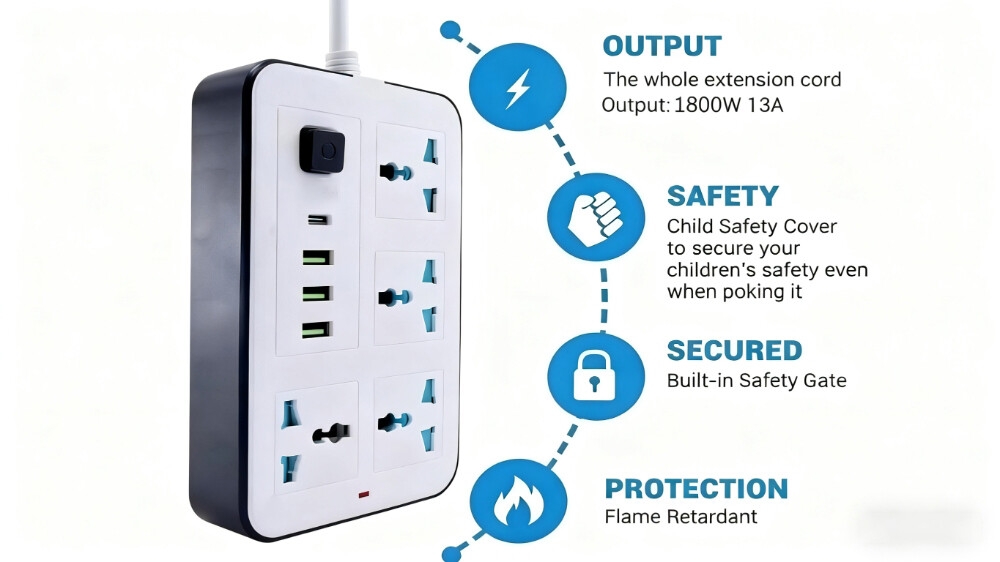 Equipped with 4 international standard sockets supporting multiple plug types, ideal for powering various home/office devices simultaneously.