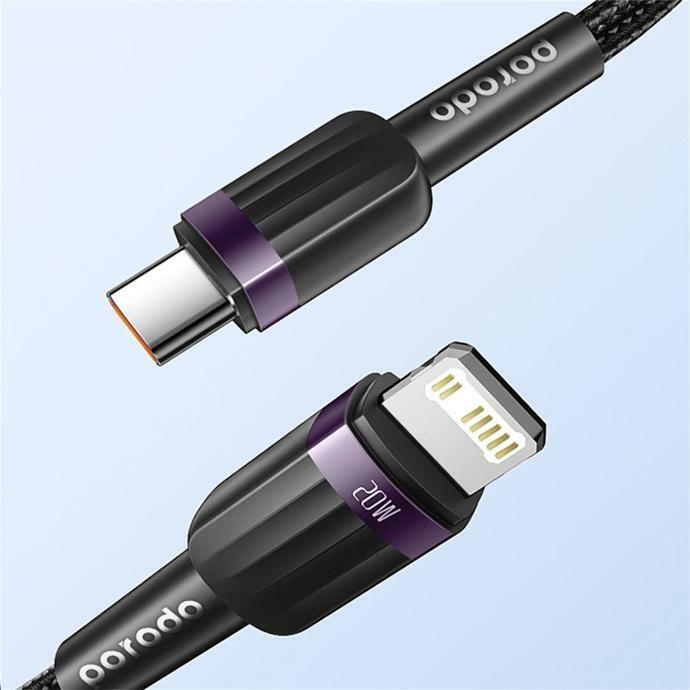 Here is the Porodo USB-C to Lightning Aluminum Braided Cable, the best option for quick charging and effective 480Mbps data transfers. It has a durable aluminum alloy built and universal compatibility for easy connecting across devices. Its simple layout allows you to wave goodbye to knots. This cable, which comes in stylish Grey and Purple colors, gives your gadgets more flair and usefulness. This item offers the ideal balance of speed and ease with its 20W Power Delivery. Using the Porodo Aluminum Braided Cable will improve your charging experience.