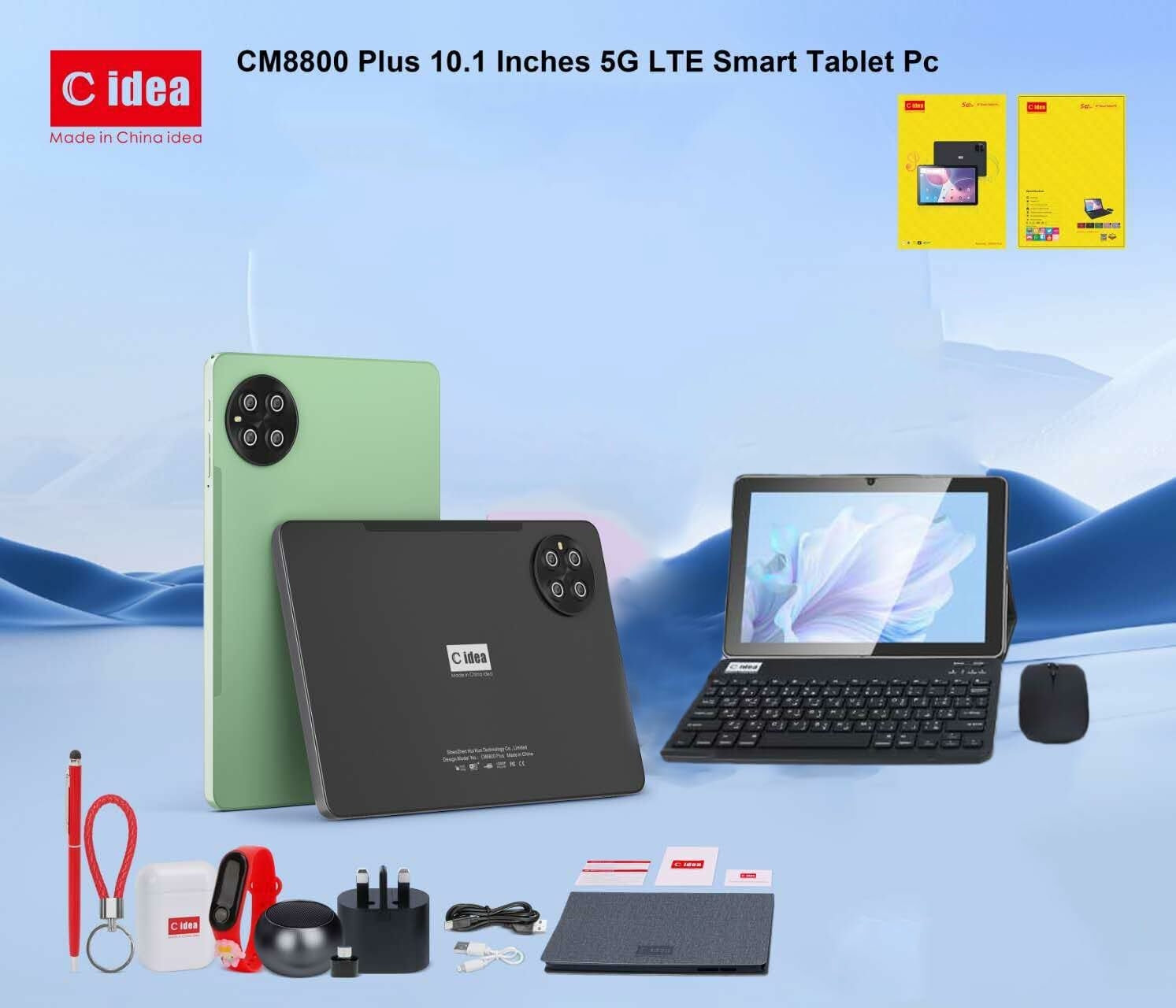 C Idea 10" Smart Tablet CM8800 Plus, Android 13 Kids Computer Tab, Wiresless Keyboard Mouse Supported, Dual SIM 5G LTE Wifi, Zoom & Tiktok Supported with Earbuds/Bluetooth Mini Speaker