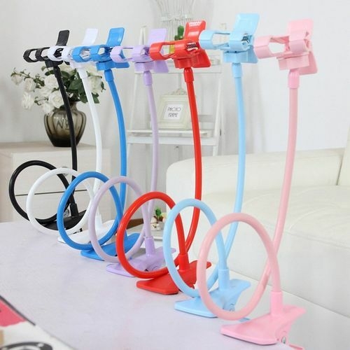The universal smartphone desktop handle holder is suitable for most mobile phones. It has four clips that can hold your device for a firm fix. The attractive rubber piece carefully hugs the body of your smartphone safely. A flexible long cord can be adjusted to any comfortable viewing angle or distance you want. It is installed to the side of tables, desks, doors, etc. through strong metal spring clips.