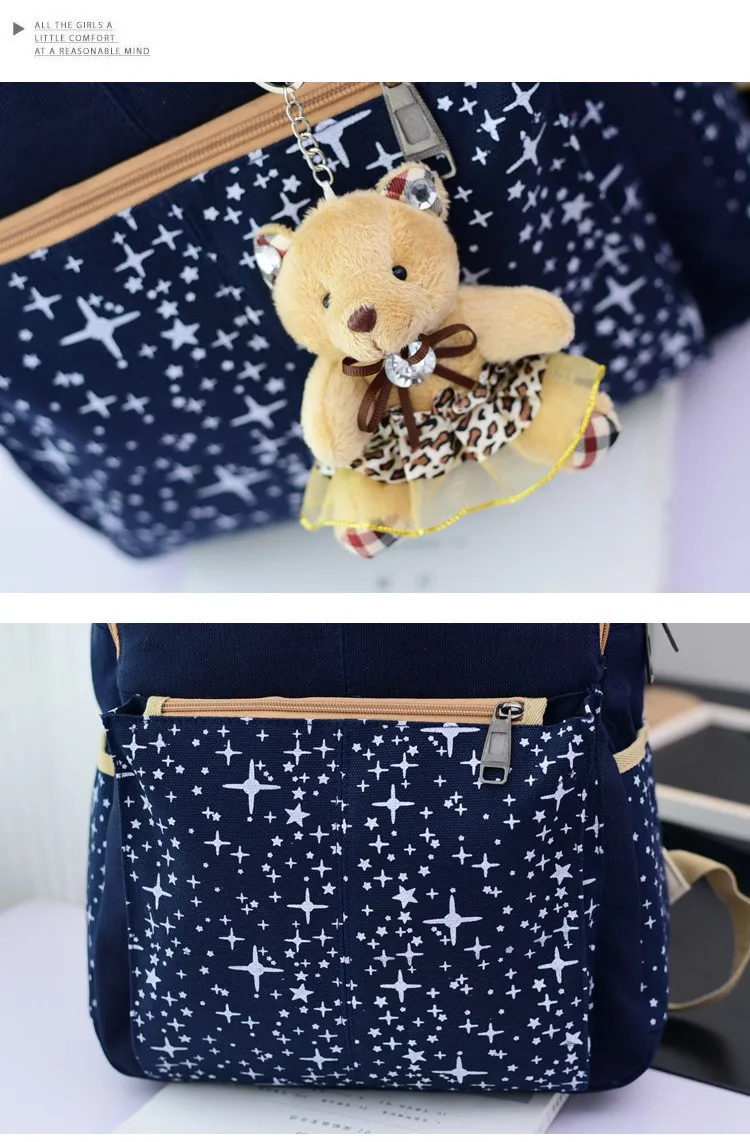 This girls' backpack is spacious enough to easily store your daily essentials. The main compartment can accommodate A4-sized books, A4-sized folders, and laptops up to 14 inches. The zippered front pocket provides easy access to frequently used items, while the side pockets easily fit a water bottle or foldable umbrella. The included bear charm adds a touch of cuteness.