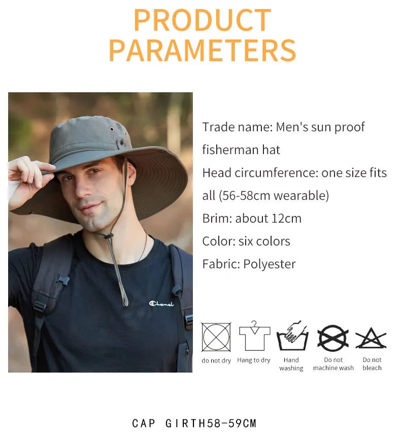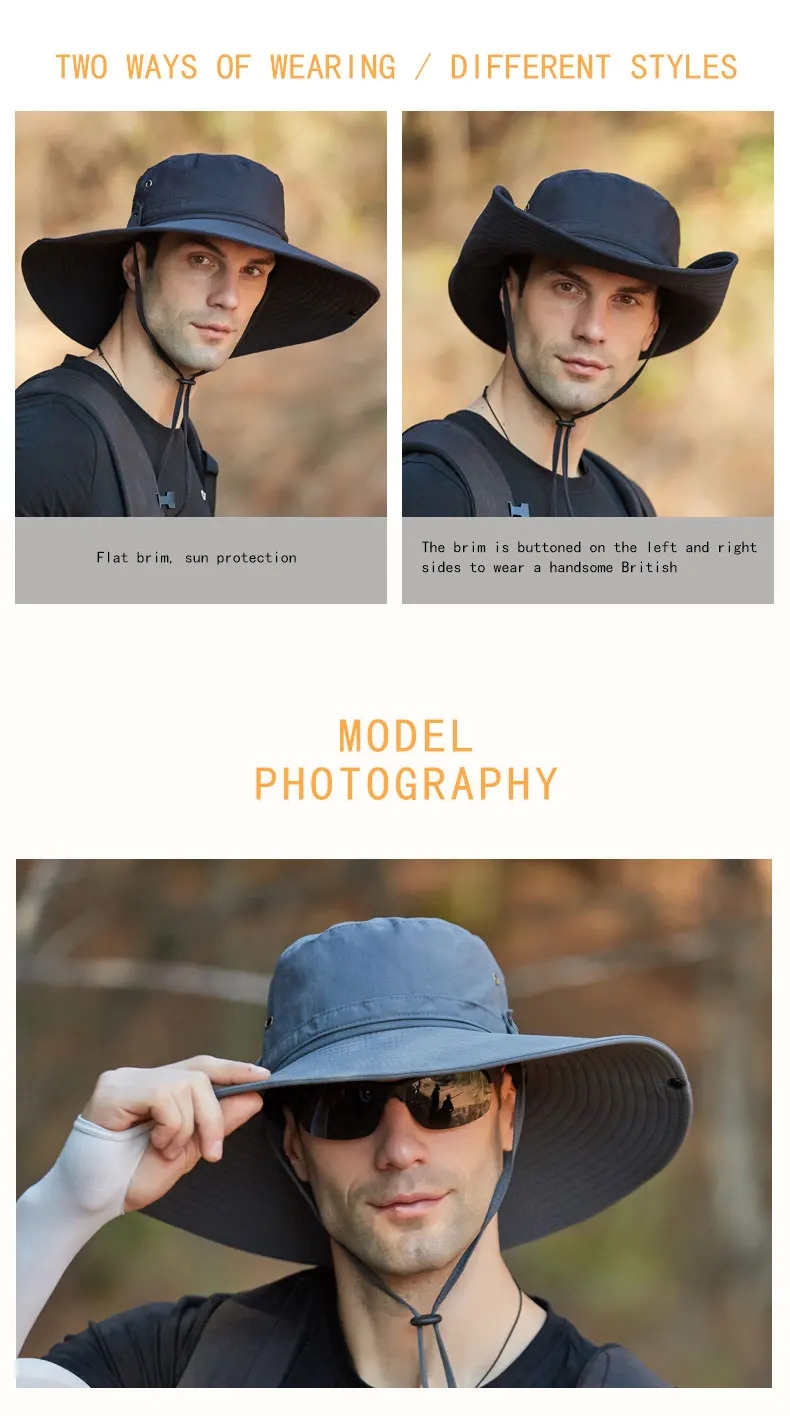 Universal Gray Men's Large Brim Sun Hat, Anti-UV Fisherman Hat ,Outdoor Sports Bucket Hat