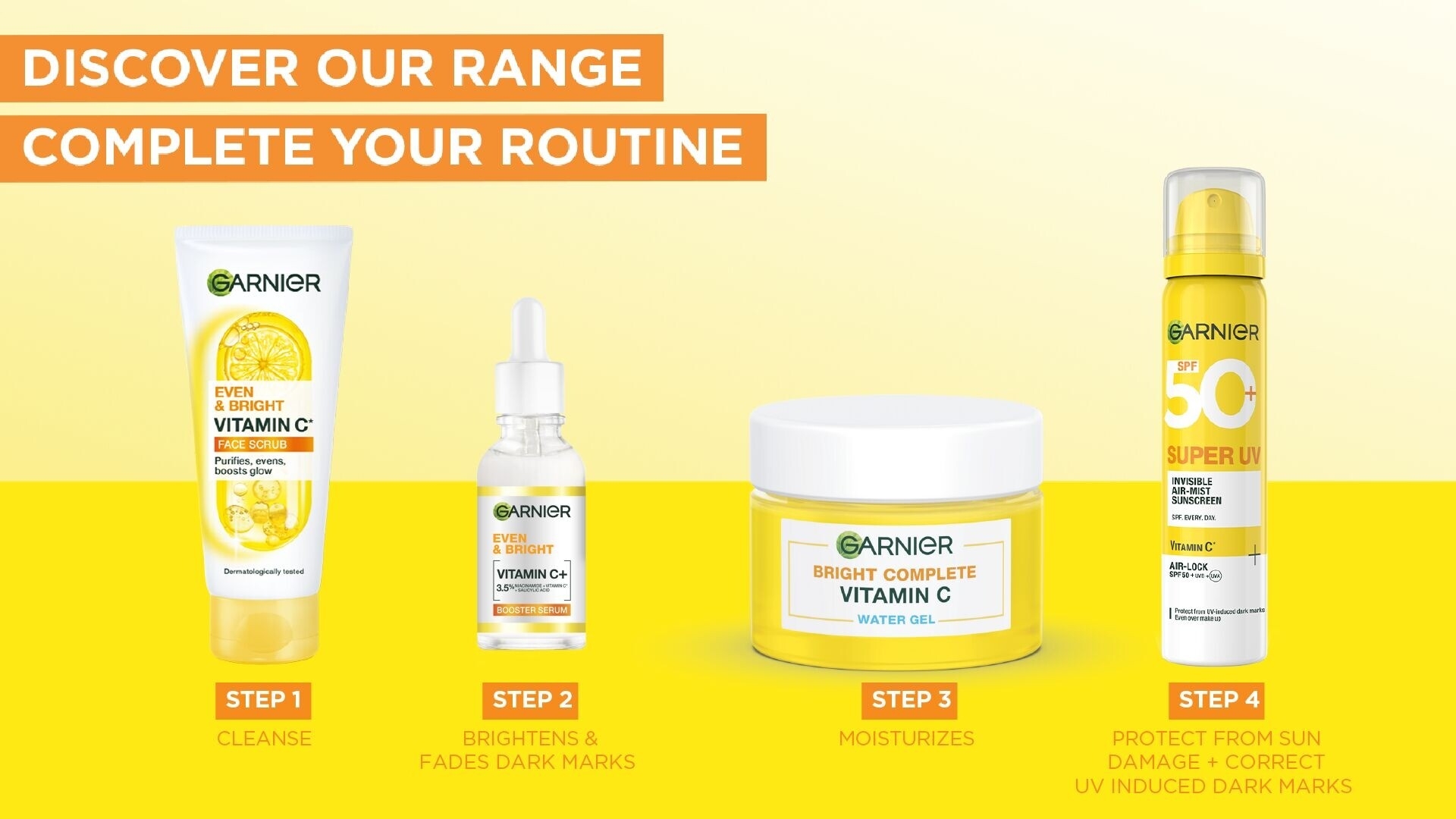 4. Follow up with the Garnier Even and Matte Vitamin C Protection Cream SPF50 For best results, use daily.
