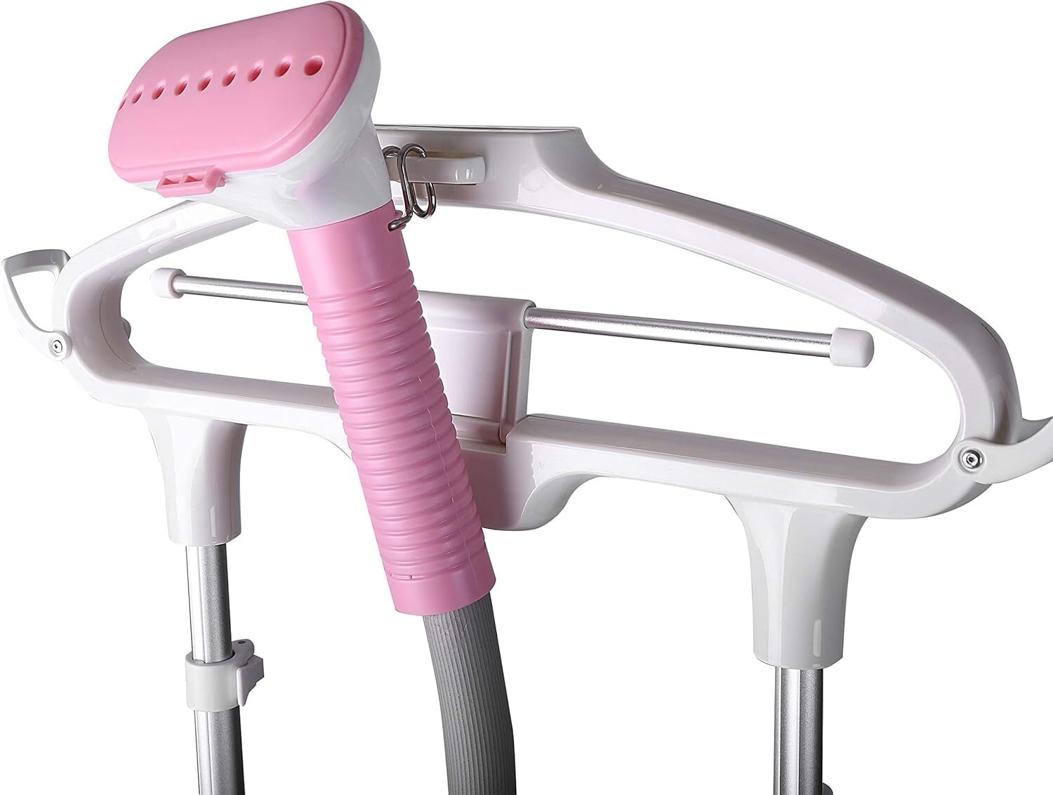 This Clothes Steamer comes with a rounded hanger, which lets you hang both, heavy and light clothes on it for steaming.