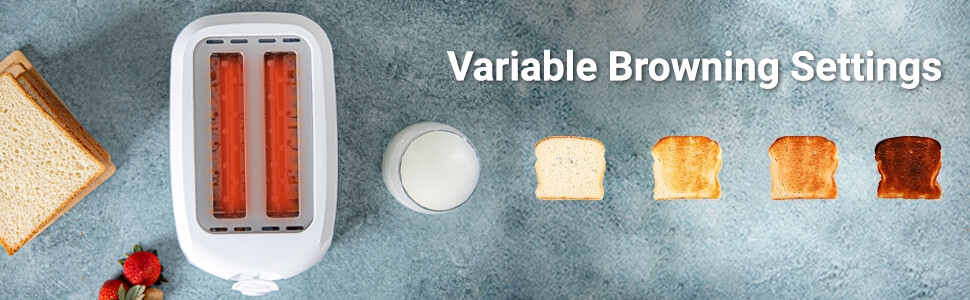 6 VARIABLE BROWNING SETTINGS - Variable browning control lets you pick your preferred shade of golden brown. Perfect toast, just the way you like it. Also includes cancel mode, which will stop toasting anytime.