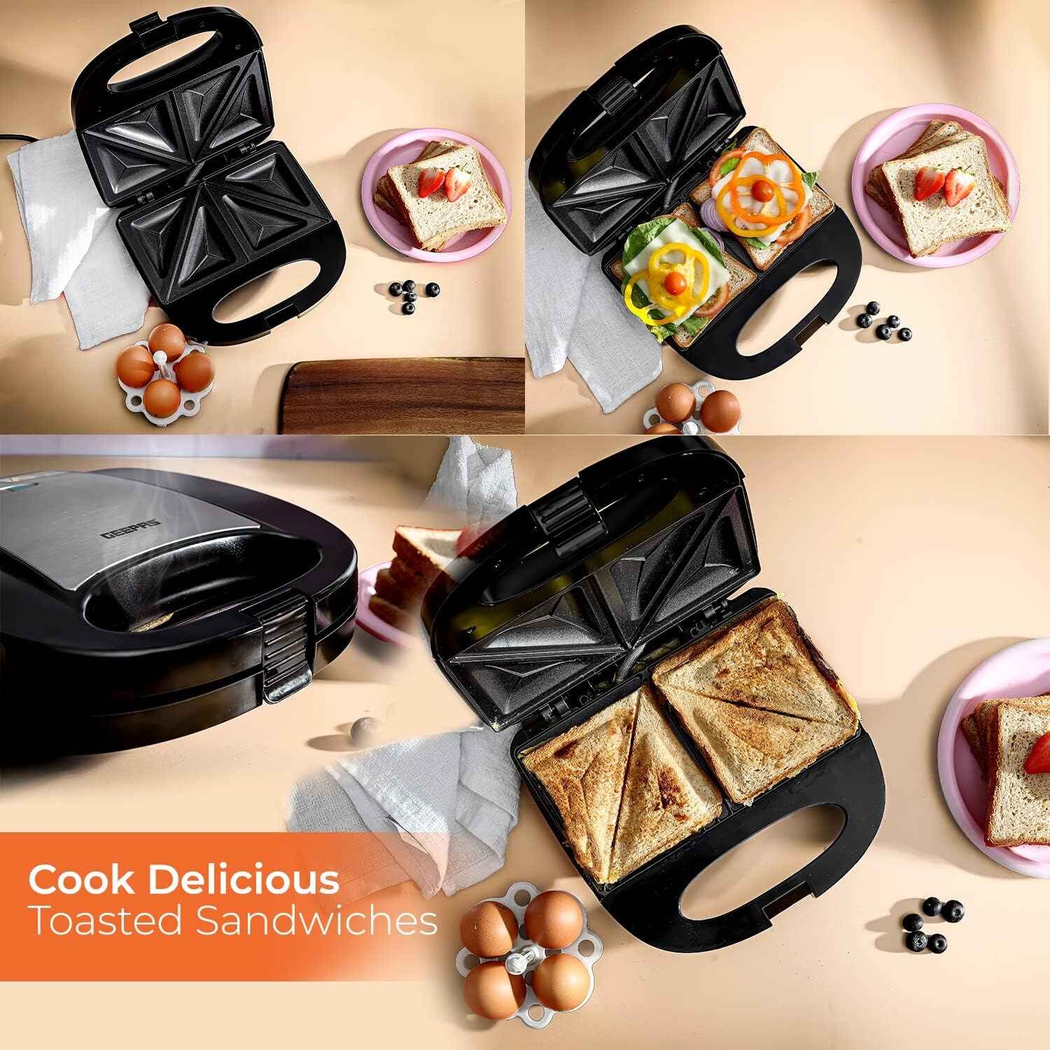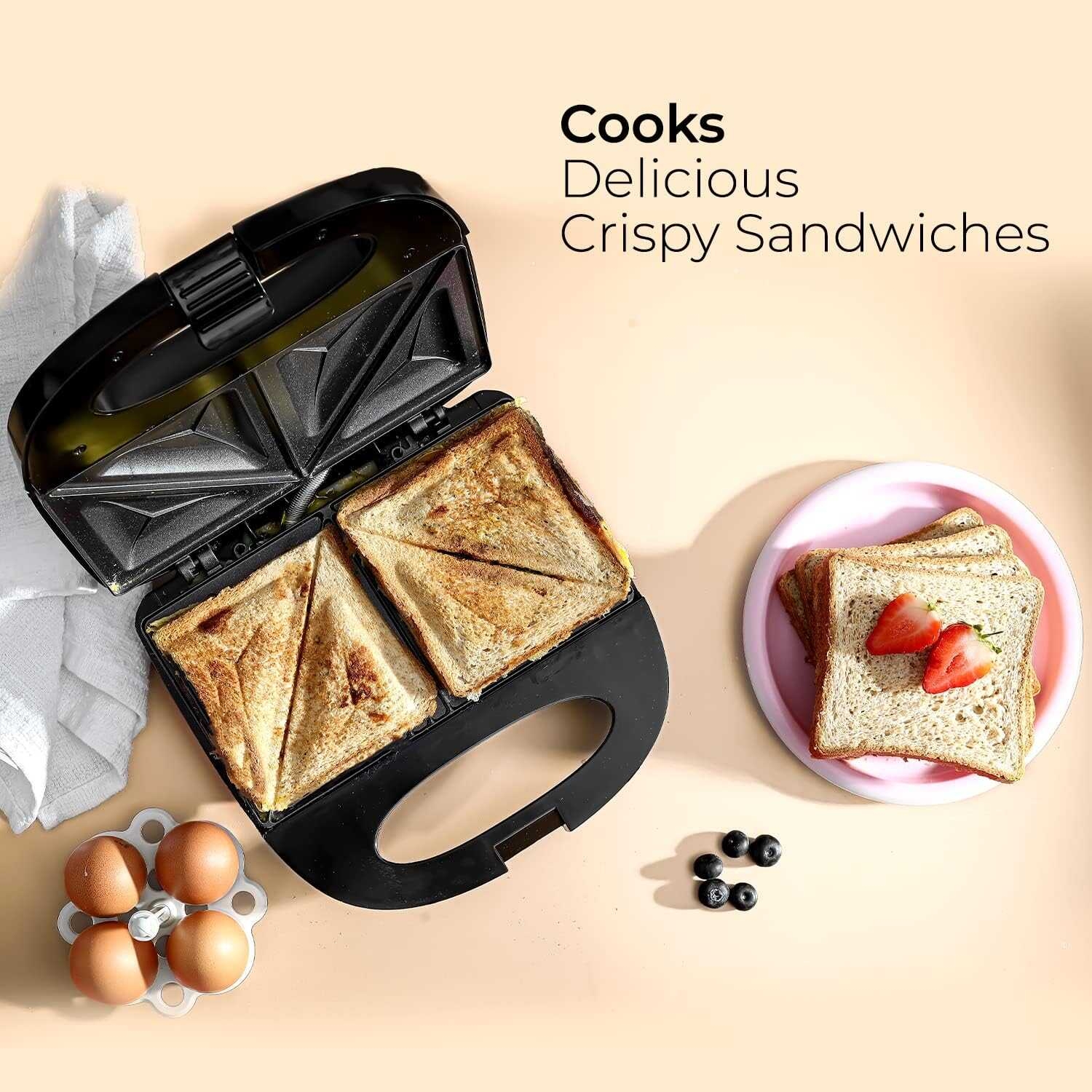AUTOMATIC TEMPERATURE CONTROL - The automatic temperature control feature saves your sandwiches from overcooking or staying undercooked. It keeps the temperature at a certain limit & maintains the heat required for cooking. The sandwich maker also has non-slip feet to provide safe, easy-to-handle cooking for all the family.