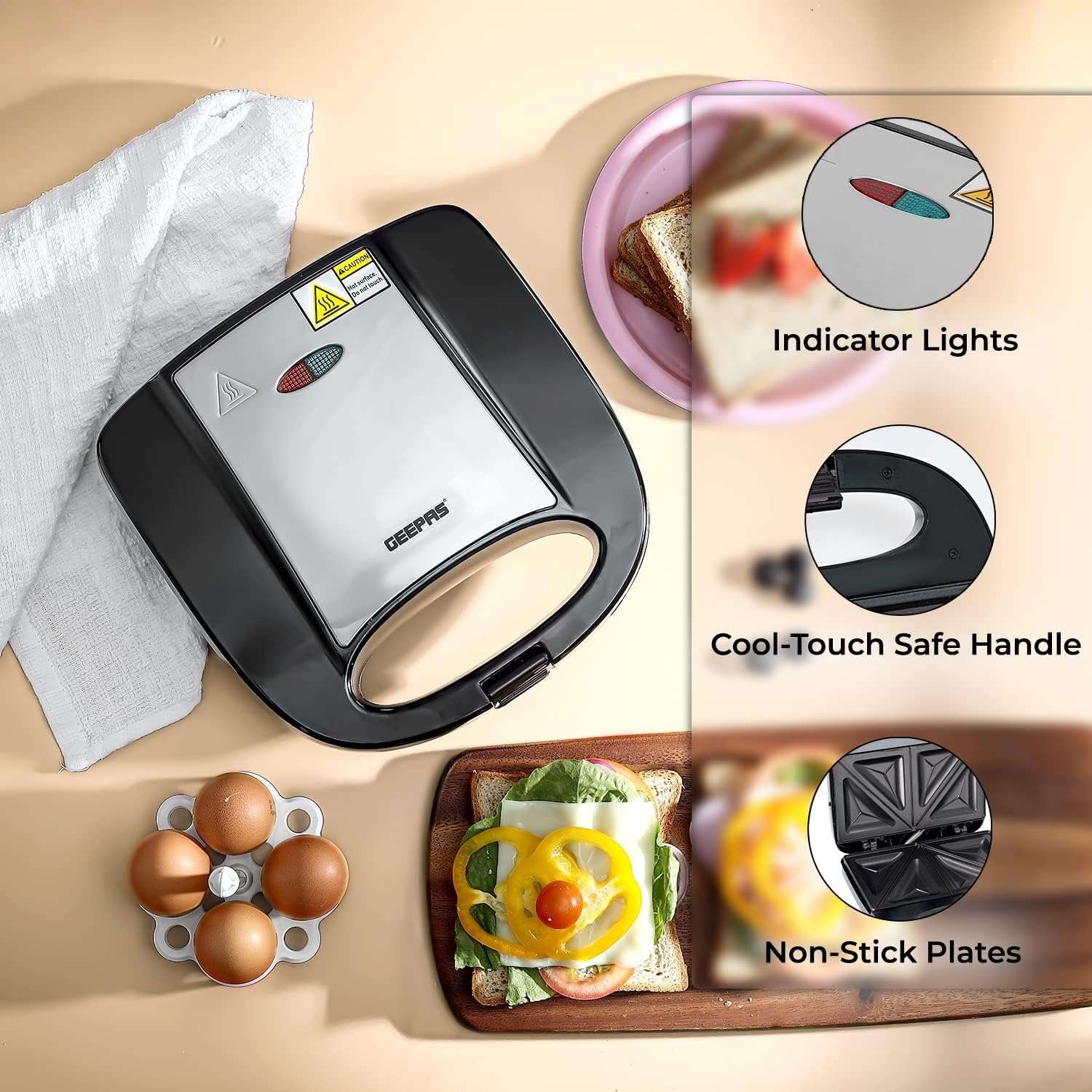 It remains cool even during the cooking process and is safe for holding and moving. With the indicator lights, you can know at a glance when your device is working and ready for toasting. Thanks to a deep bed with smaller plates, you can fit more of your favourite fillings while avoiding spillage.