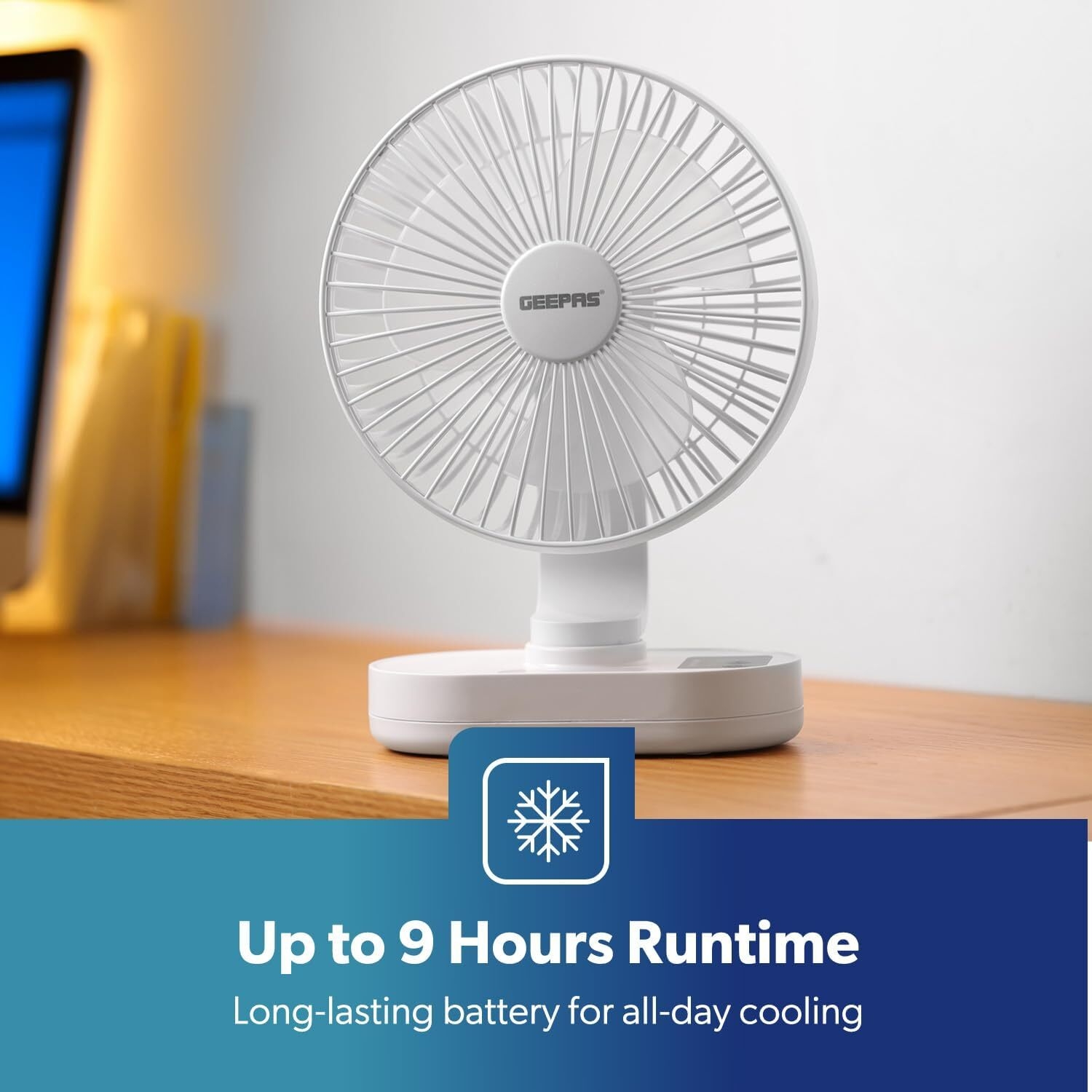 So, during your outdoor activities, you would have to keep on sweating. thus saying goodbye to all the fun that you were supposed to have. Then go to Geepas\' newly designed 8-inch rechargeable fan.