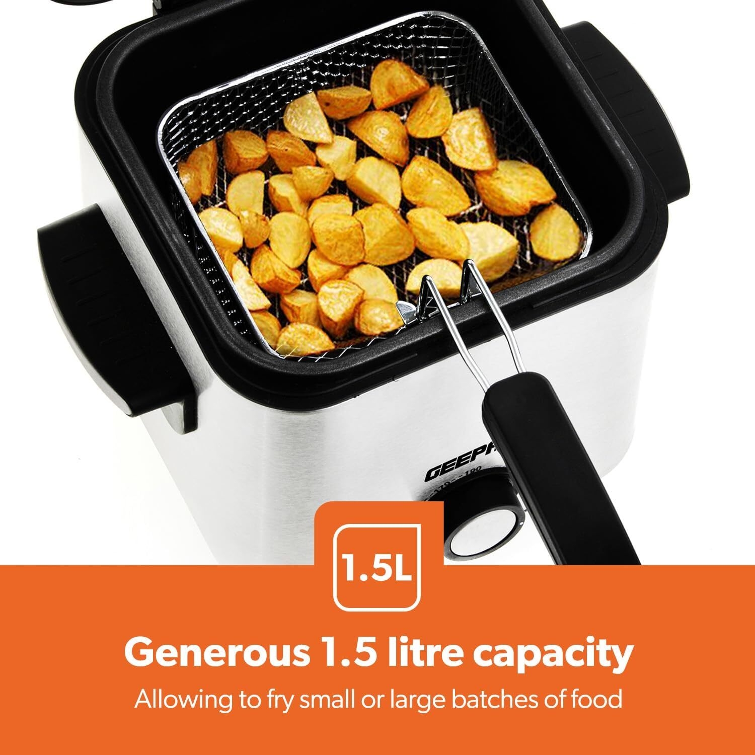 Serve tasty starters and nuggets to your guest using Geepas deep fryerADJUSTABLE THERMOSTAT WITH INDICATOR LIGHT - From 0-190C, meaning you are in complete control of your cooking. With an easy to use four gear temperature function, it's simpler than ever to get the exact right temperature, allowing you to cook delicious foods perfectly.