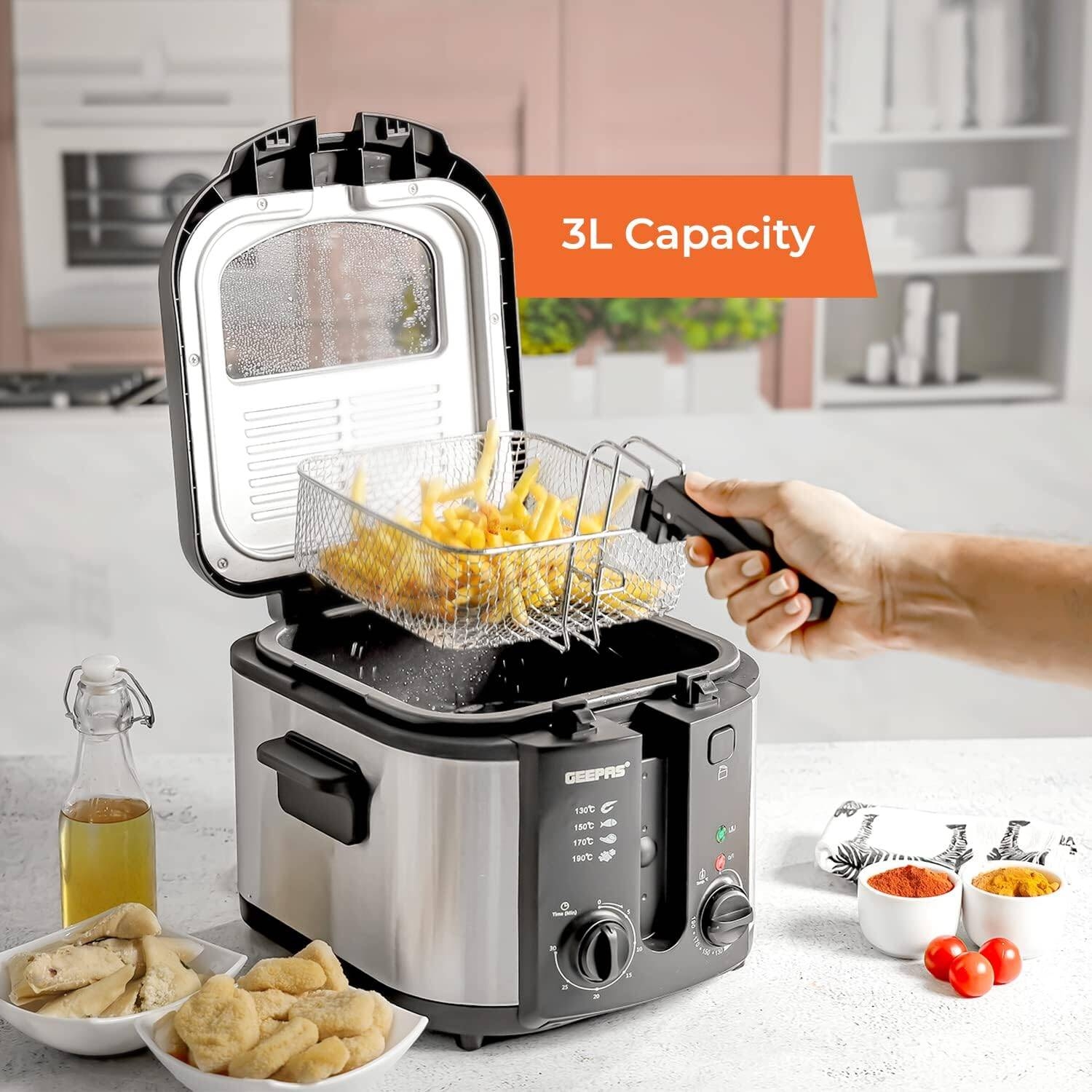 Geepas Deep Fat Fryer - 3L Stainless Steel Fryer with Viewing Window