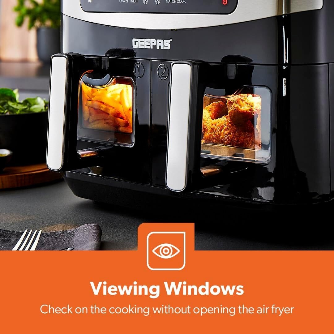Dual Zone Air Fryer with Visual Window - 9L XL Capacity, 2 Drawers, 10-In-1 Cooking Presets, Touch Screen, Smart Finish, Timer Function,...