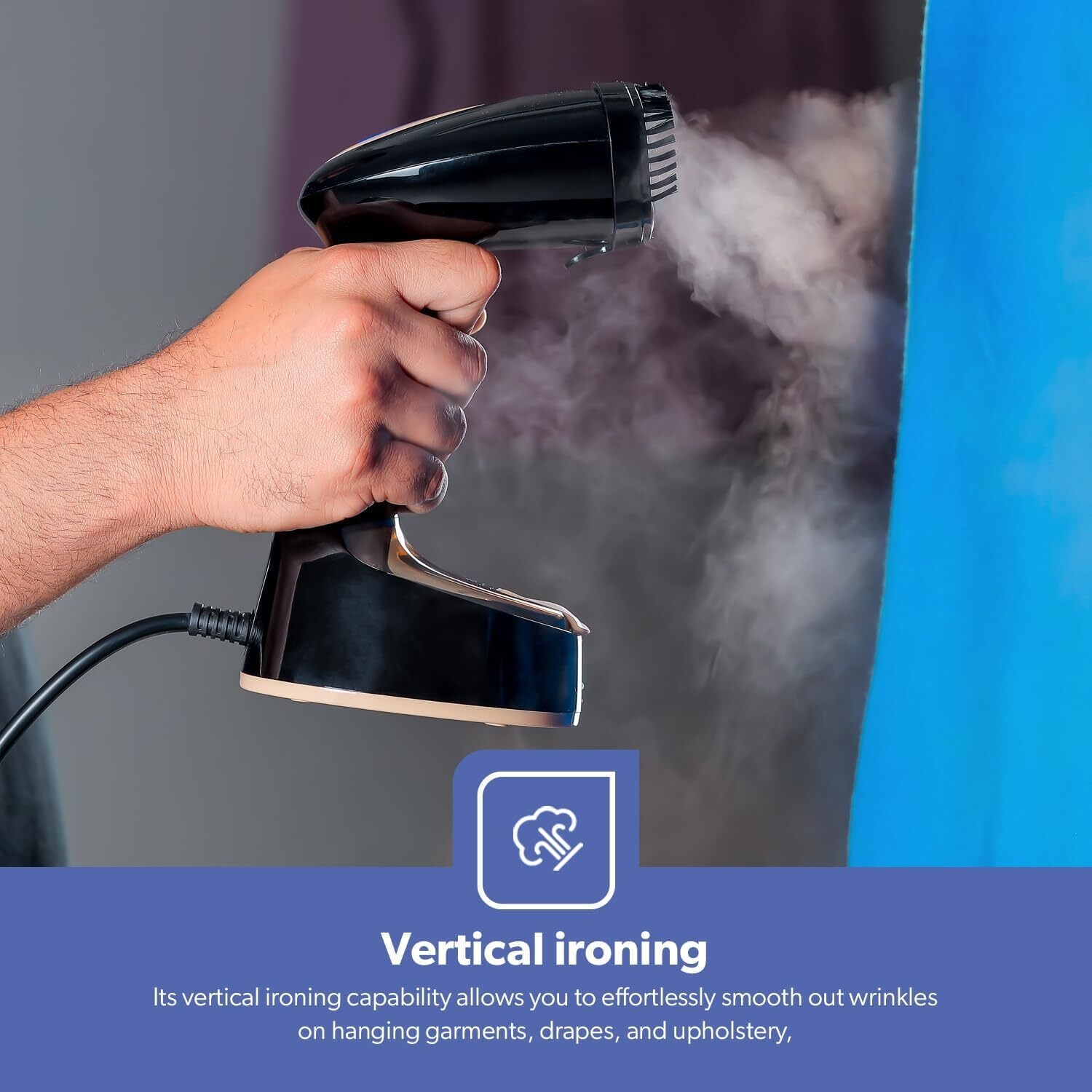 Featuring a stainless steel head, the black and golden handheld garment steamer allows you to accomplish the job efficiently and reduce the chance of damage. This simplifies your daily chores. Additionally, the stainless steel head resists corrosion.