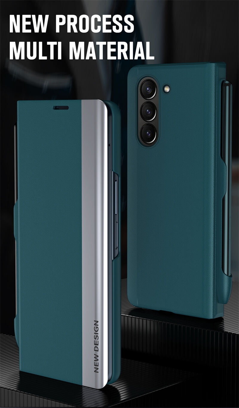 360° Fully Protected Shockproof Cover For Samsung Galaxy Z Fold 4 5 5G PU Leather With Stylus Stand Electroplate Phone Case