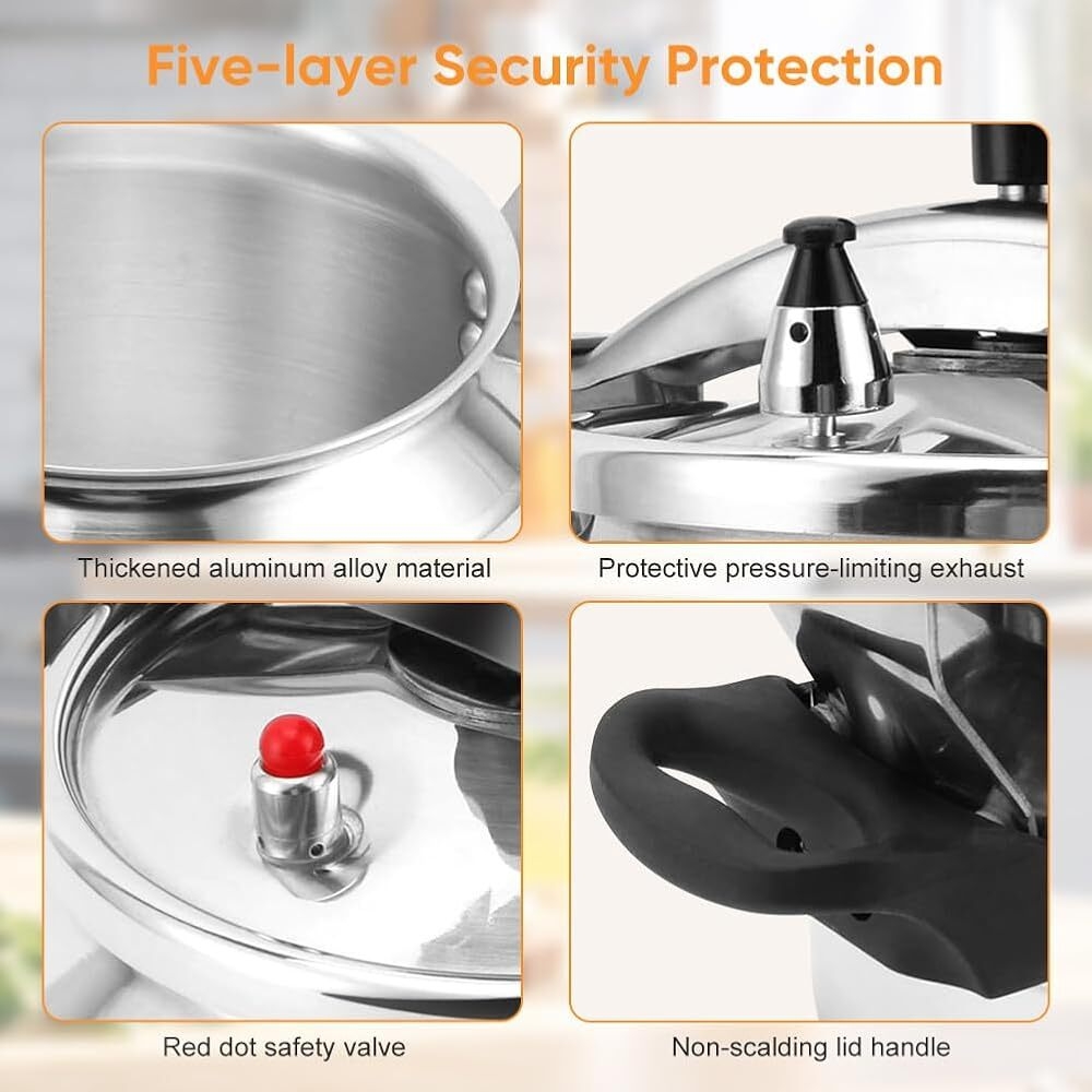 With this Aluminum 5ltrs pressure cooker yo u will definitely enjoy quick and easy meals with delicious and tasty food. This explosion proof Pressure Cooker cooks 70 percent faster, ensuring that you spend less time cooking and more quality time relaxing with family and friends. Make entertaining and serving meals a breeze. No need to worry of the time to prepare that delicious meal for your family and friends all you need is this magical pressure cooker.