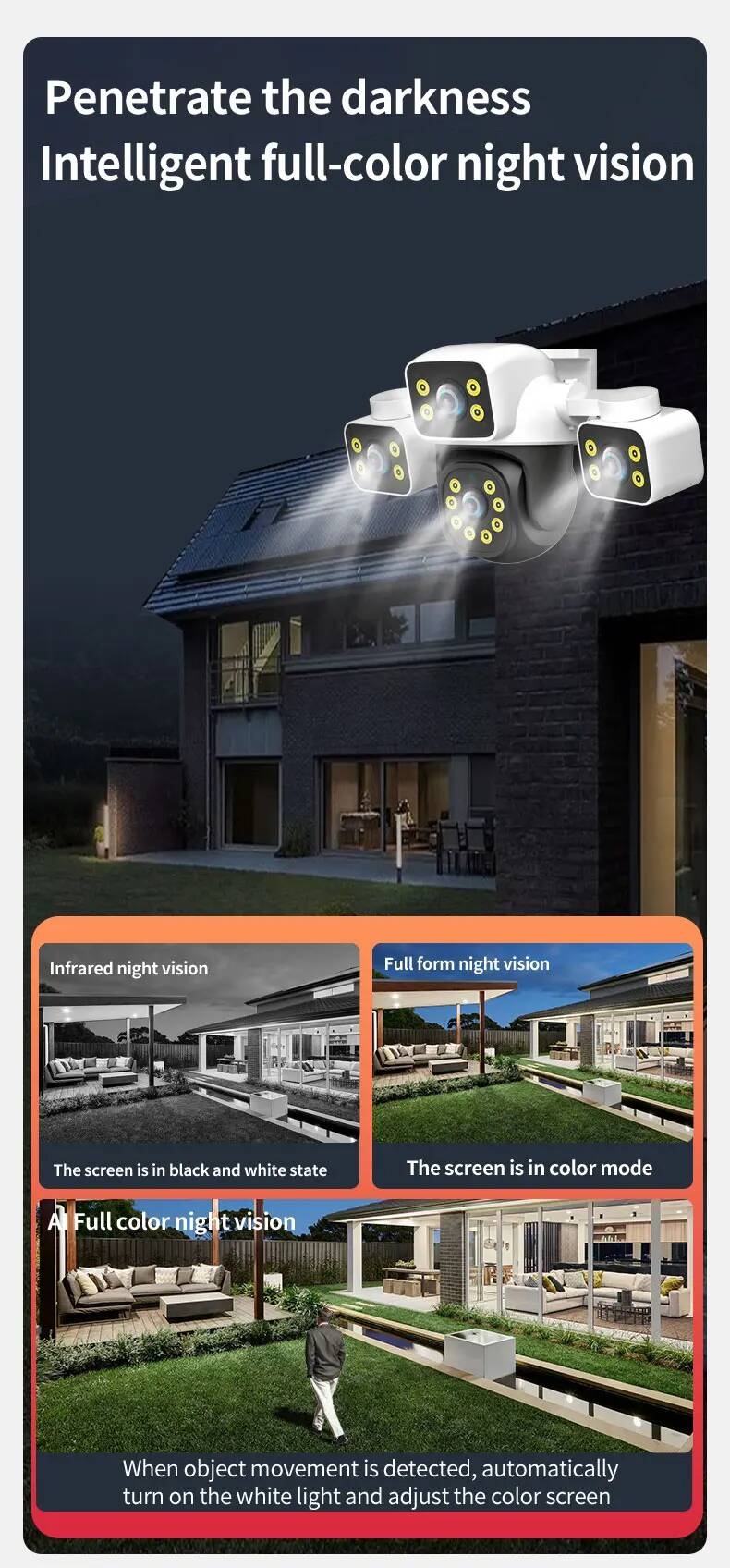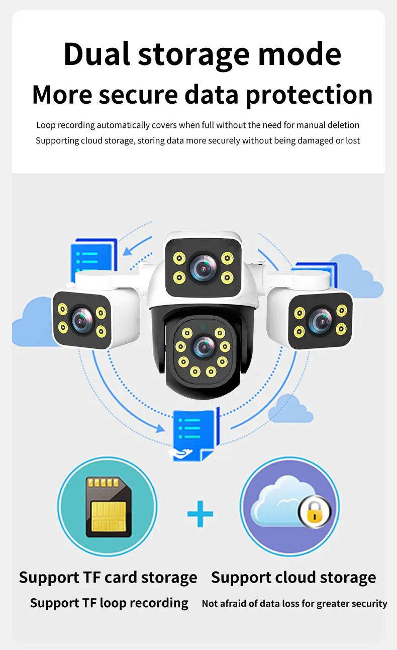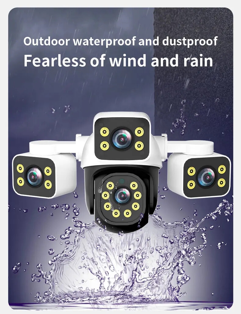 6MP Outdoor External Full HD IP Camera 3 Lenses 3 Screens Wifi Camera 4K Dual Screen Auto Tracking PTZ Surveillance Camera