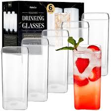 Amazon.com | Kitchen Lux Square Drinking Glasses Set of 6 - ...