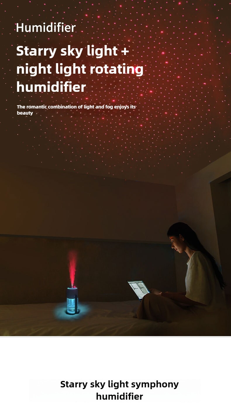 1. Romantic Starry Projection: Create a dreamy atmosphere with the portable air humidifier's built-in LED light that projects a starry sky onto your ceiling.