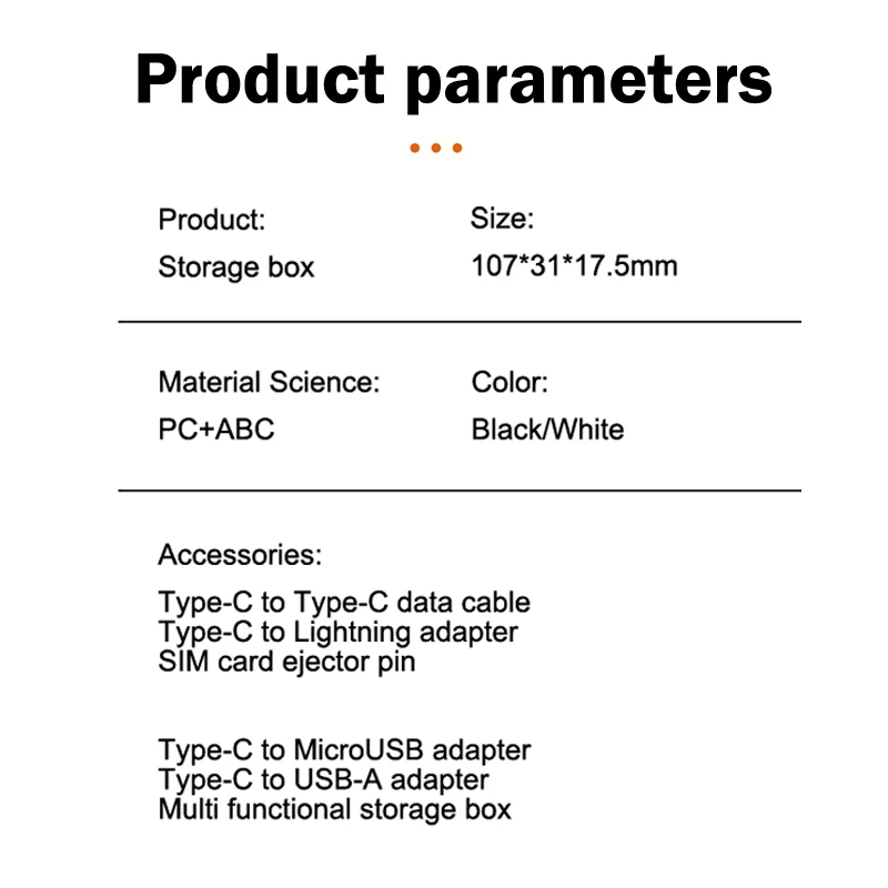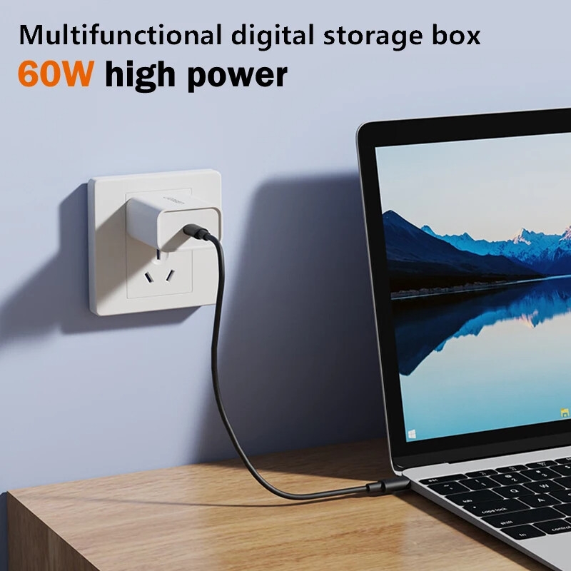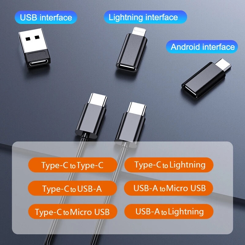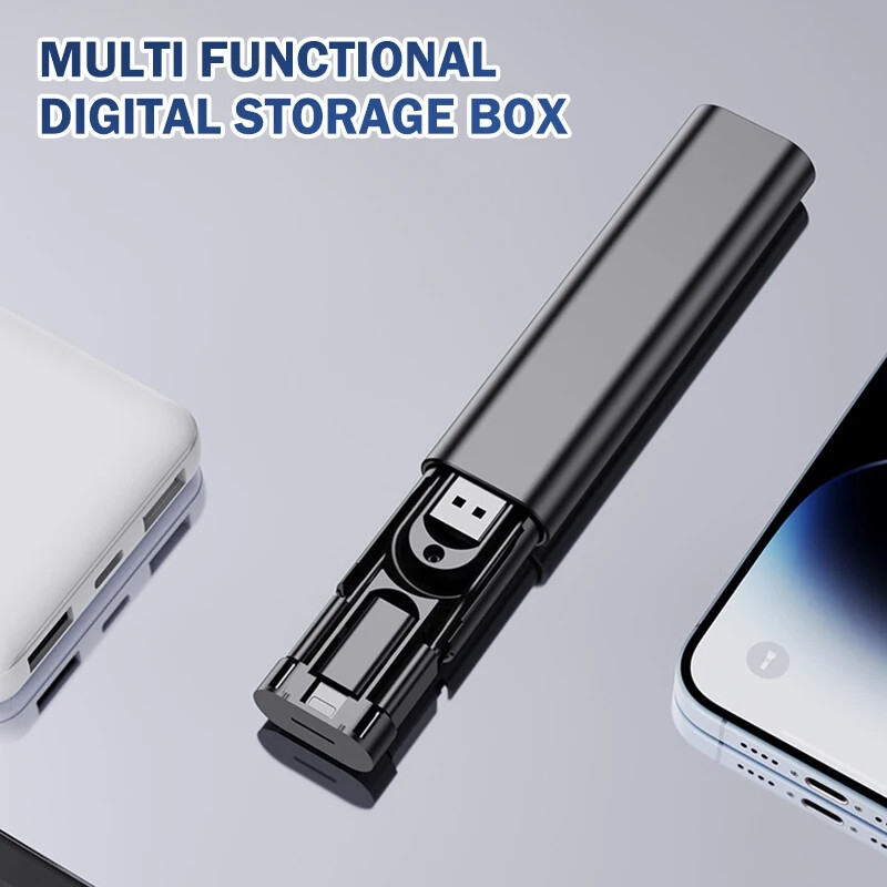 Multifunctional Data Cable Set USB Conversion Storage Box,Multiple Interface Data Cable Android/iOS/Type C - Black