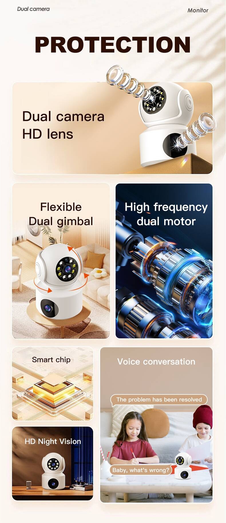 Package Contents: 1 x 4MP HD WiFi dual-lens indoor color night vision camera.