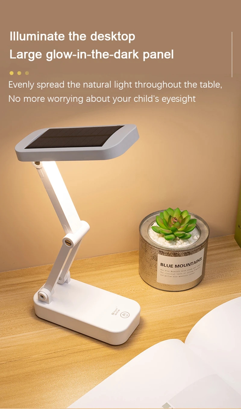 1X Dual Mode Solar Desk Lamp/USB Charging LEDReading Lamp With Eye Care Adjustable eye Brightness Desk Lamps