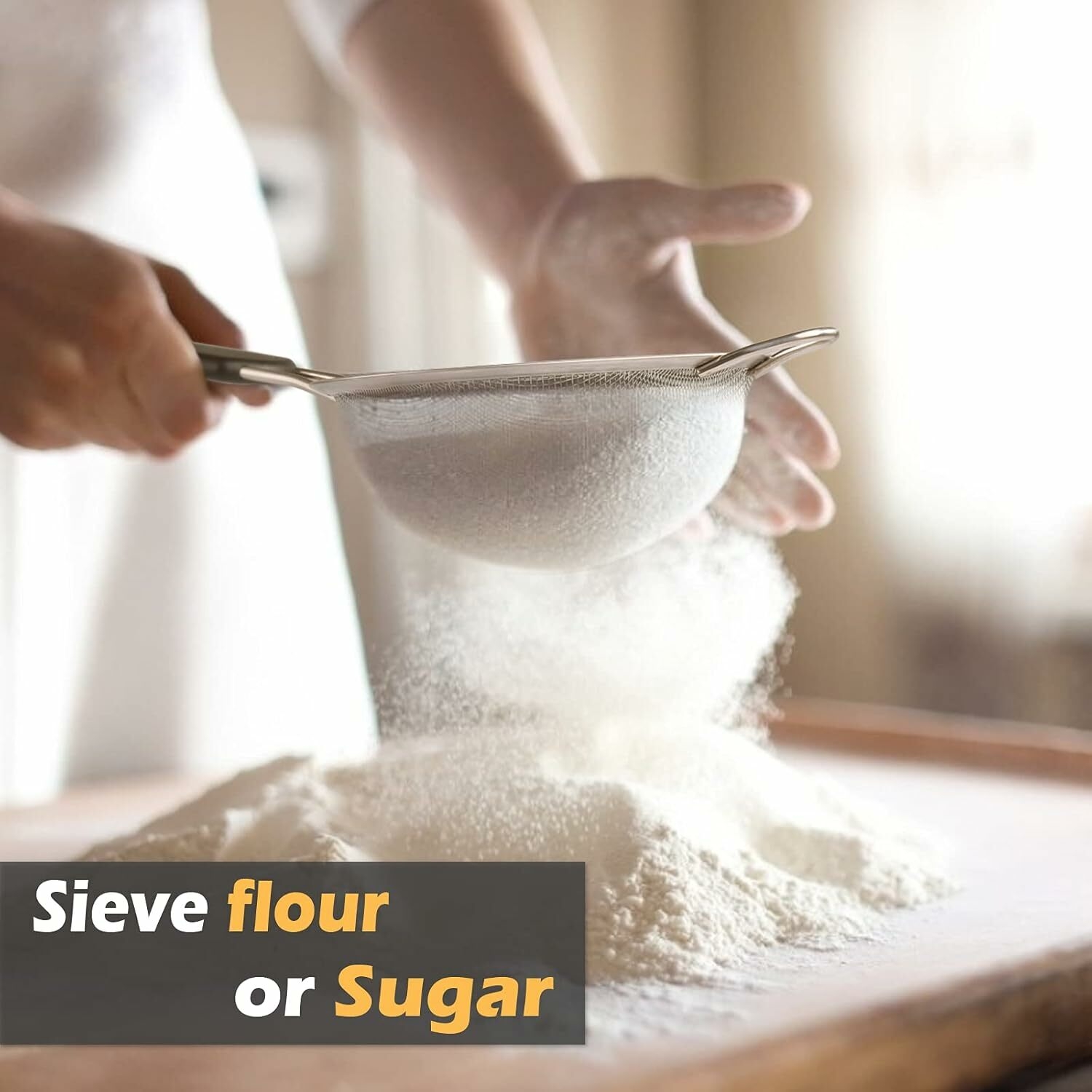 Our multi-purpose, stainless steel mesh mini sieve has a double-walled construction for extra strength, with a fine sieve mesh for finer sifting and benefits from a long, looped stainless steel handle for hanging.
