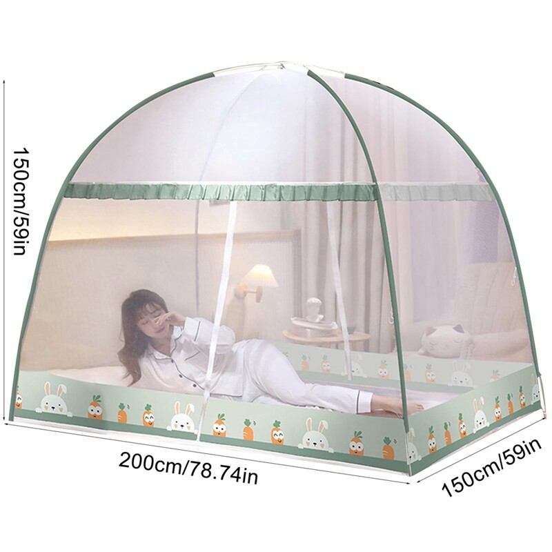 1 X Foldable Automatic Installation Yurt Mosquito Net-Zipper Double door Mosquito Net-1.5Mx2M-green