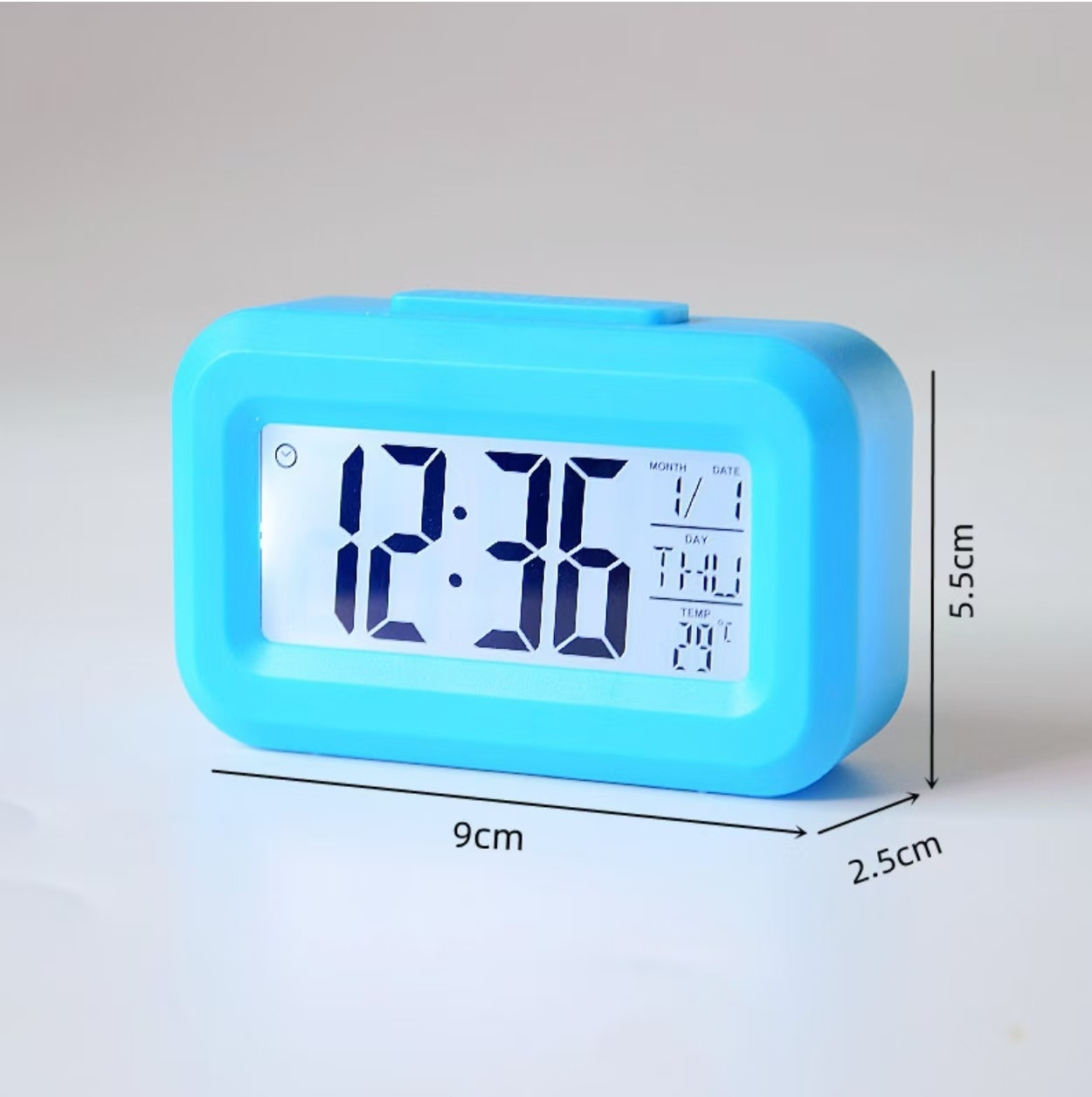 Children's digital alarm clock with luminous function, novel alarm clock style, set clock, alarm clock, timer as one. Temperature display, calendar display, and backlight. Is a cost-effective desktop alarm clock. Built-in English operating instructions.
