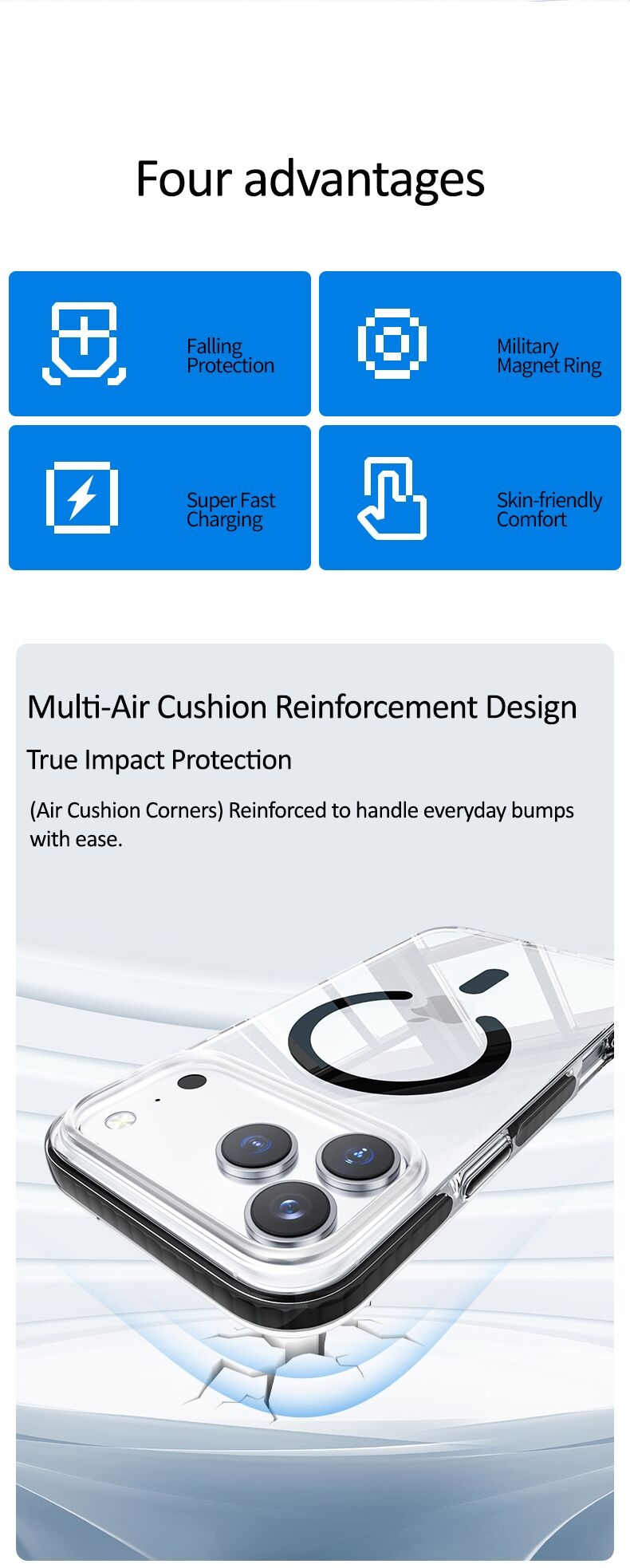 Airbag Corners Protection: Advanced airbag tech built into the corners absorbs shock from drops, keeping your phone safe and reducing damage.