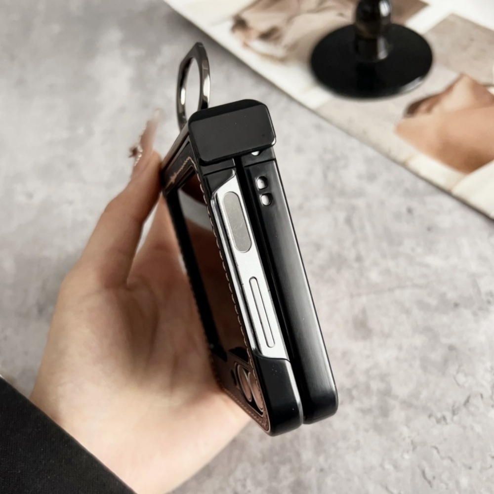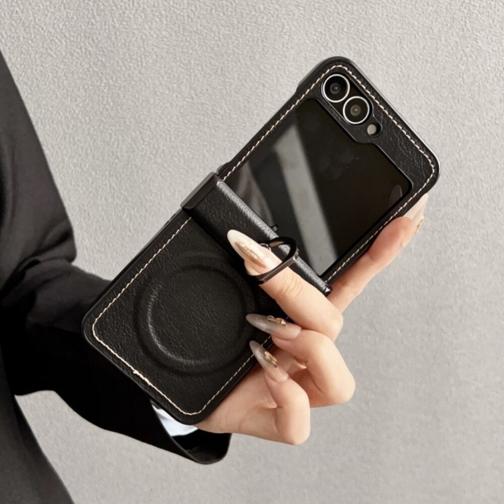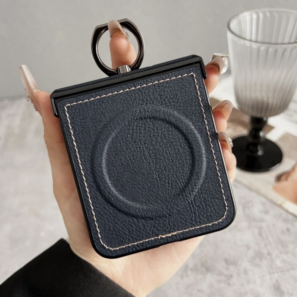 Luxury Litchi PU Leather Phone Cover Samsung Galaxy Z Flip 4 3 Case with Ring Holder for Magsafe Magnetic Wireless Charge