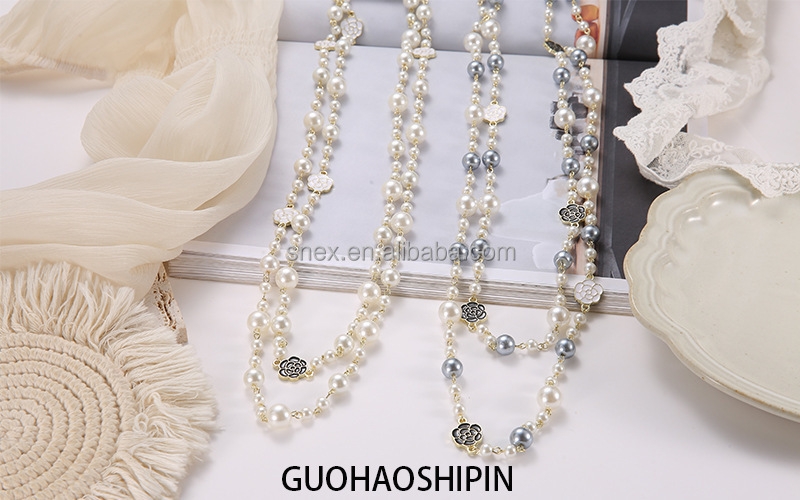 Long Layered Necklace for Women Double Layer Necklace Chain with Pearl/Resin Cube Vintage Retro Winter Sweater Party Dress Jewelry Accessories