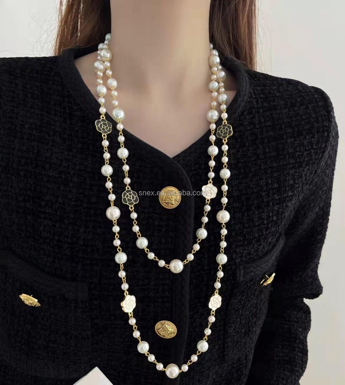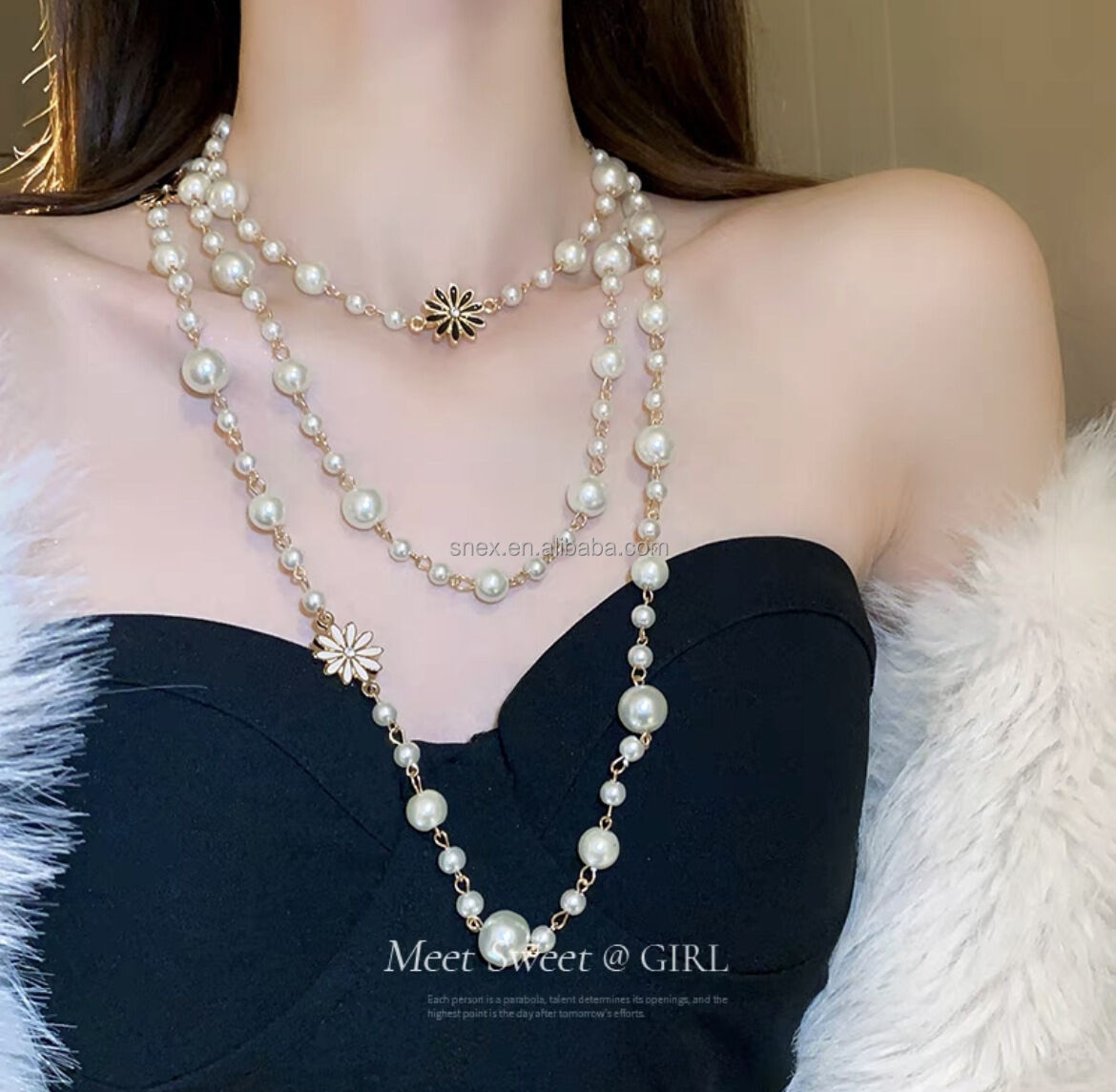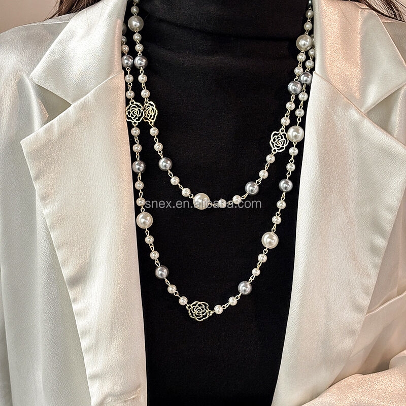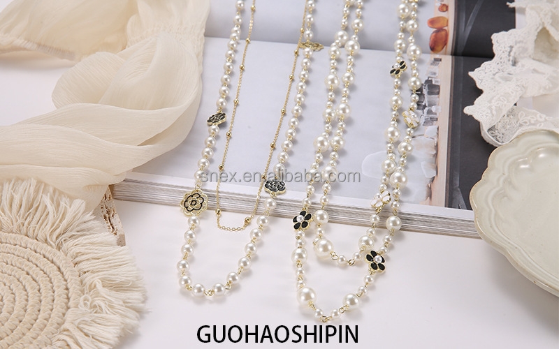 Long Pearl Necklace with Different Flower Elegant and Fashion Pearls Necklace for Woman.