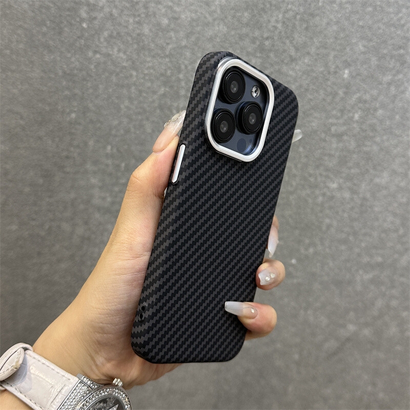 Luxury Carbon Fiber texture Magsafe case for iphone 15 Pro Max Alloy Lens frame Wireless Charging hard back cover
