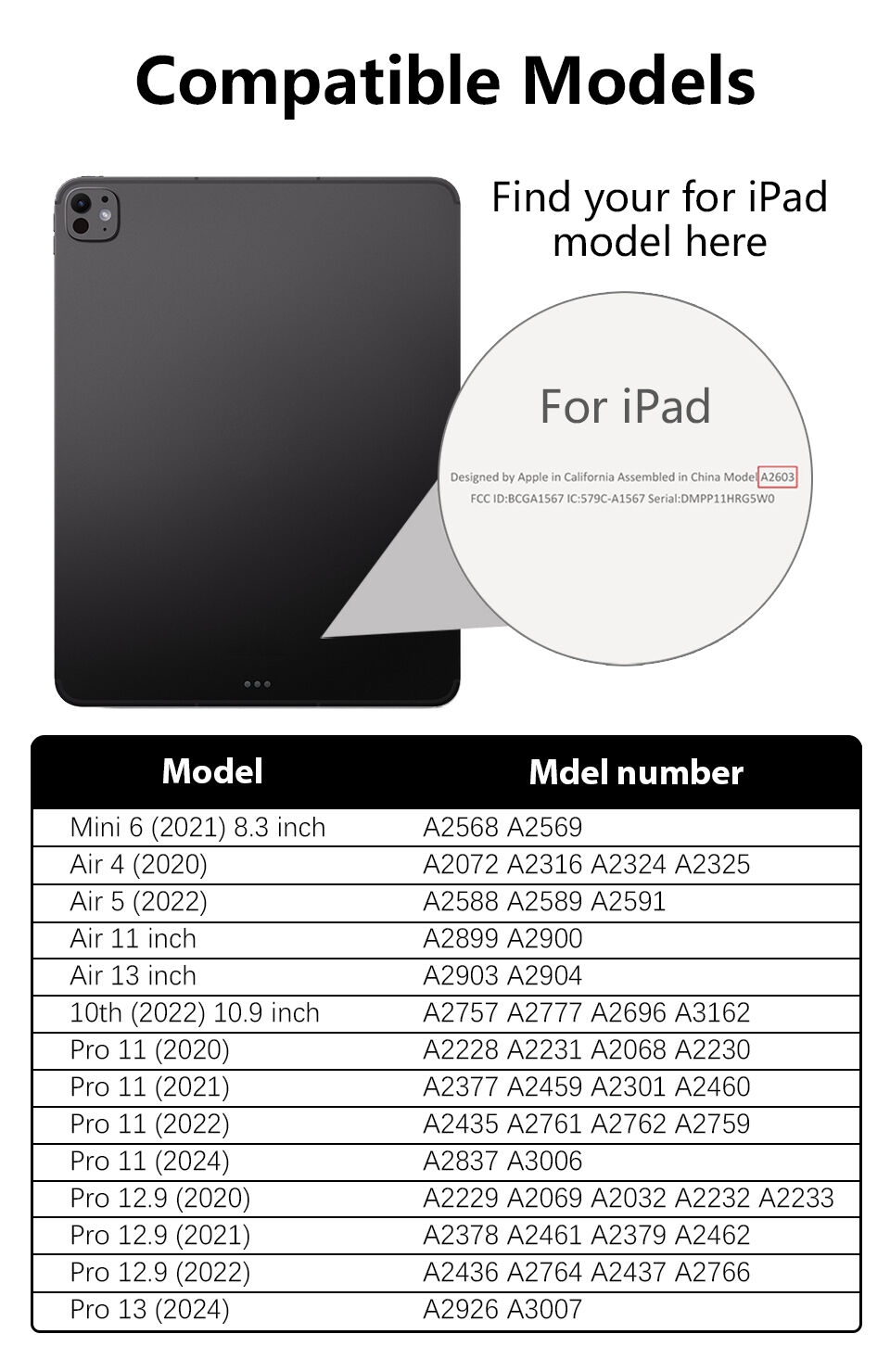 Please check your for iPad model number before purchasing. It is located on the back of the for iPad, model number: A ****. If there are any issues with the product, please contact our customer service. Thank you