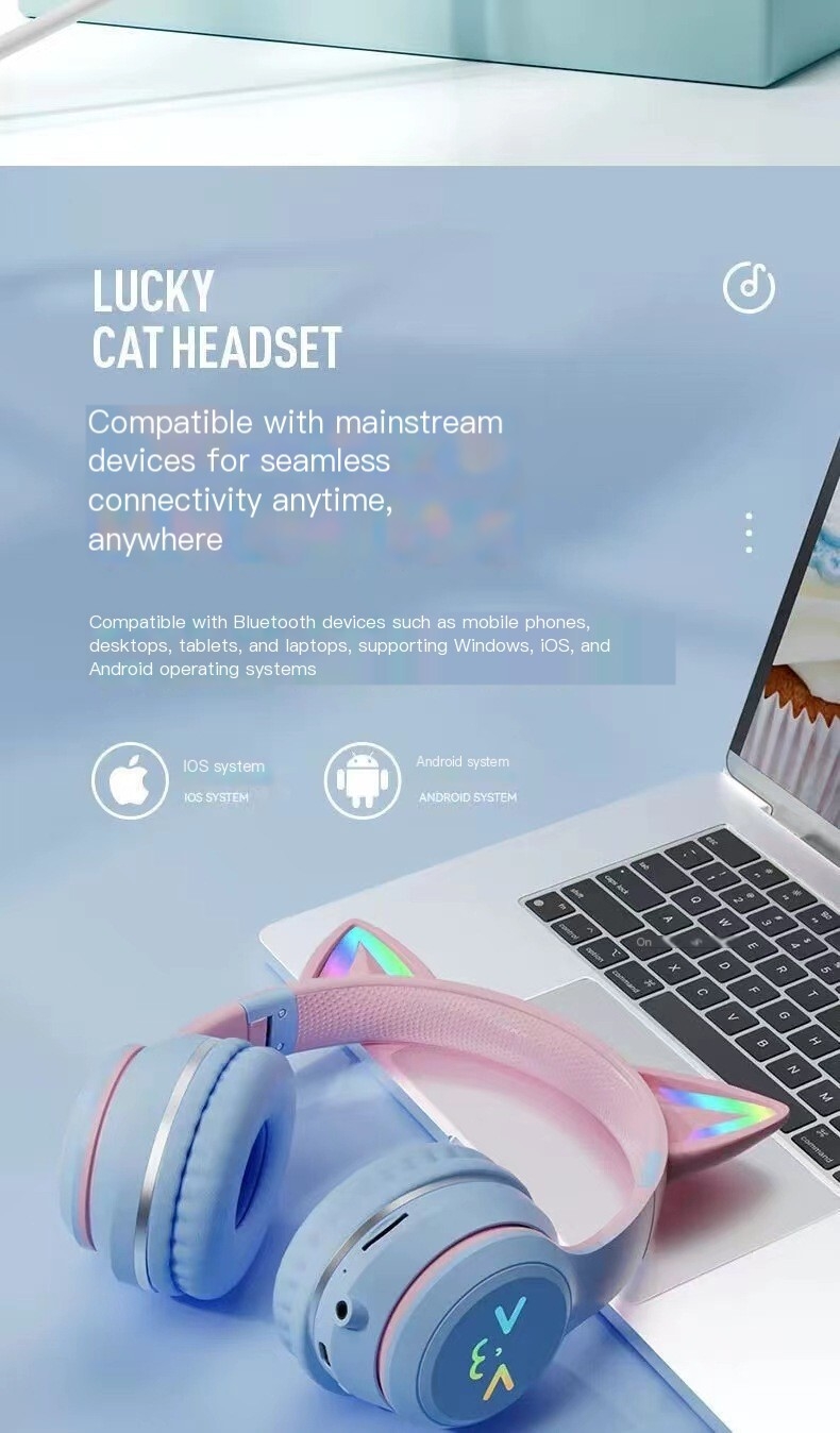 - Cat Ears Headphones with LED Glowing Lights over the ears Gaming Headphones Headset for Mobile Phone Pad Computer PC