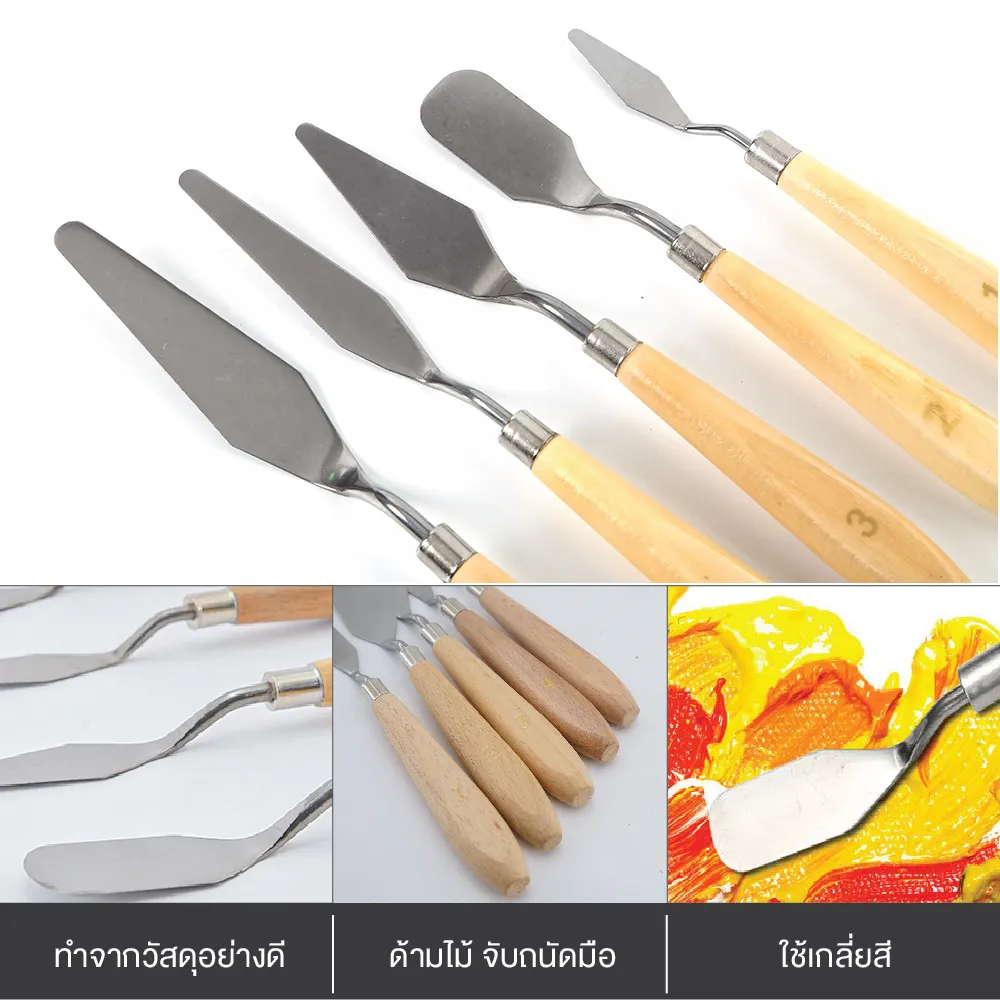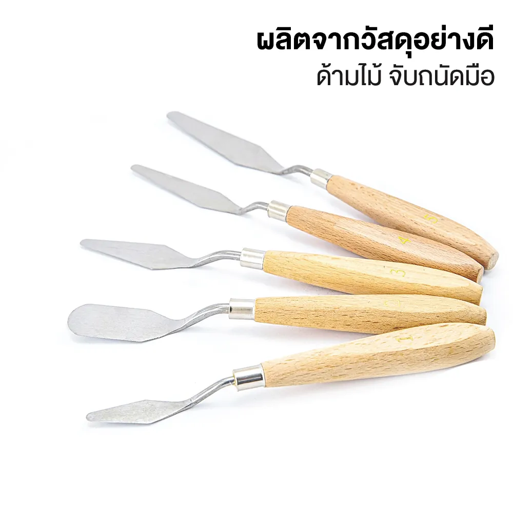 - Mixing palette knife with natural wood handle, comfortable to hold.
