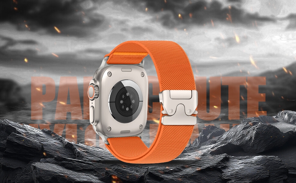 【Upgraded Parachute Style Clasp】Parachute Buckle for Apple Watch Ultra 2 Titanium Milanese Loop Band,The buckle close is not smooth to wear.To solve this problem, we use the elasticity of nylon material to solve the problem of insufficient length when buckling.Parachute Style buckle is made of lightweight titanium metal,ensuring a stable and comfortable wearing,From this,A perfect Parachute Buckle Elastic solo loop watch band is born