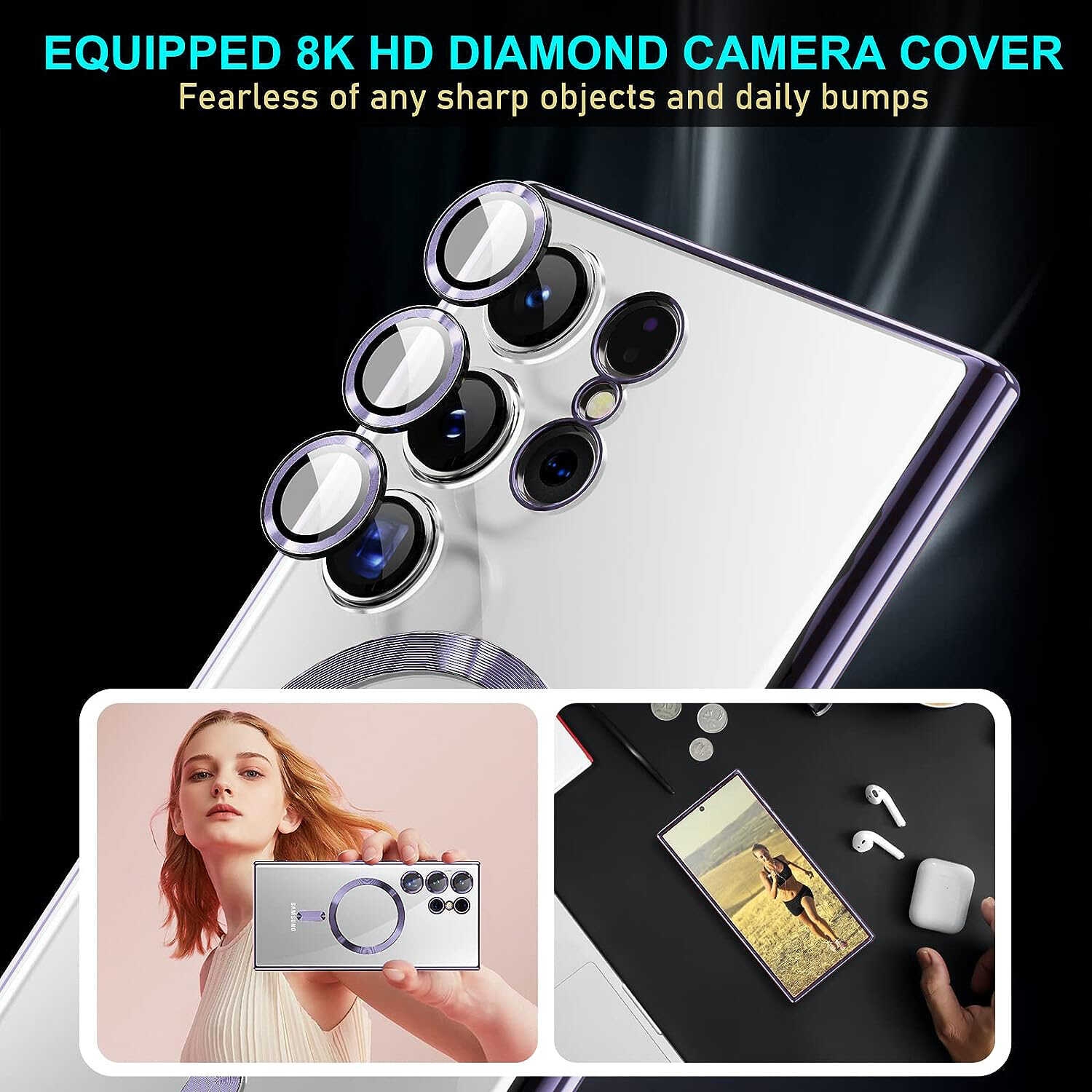 Clear Slim Electroplating Case Compatible with Samsung Galaxy S23 Ultra, Compatible with MagSafe, Anti-Fingerprint and Scratch Resistant Magnetic Phone Case, [Camera Protection] Transparent Case.