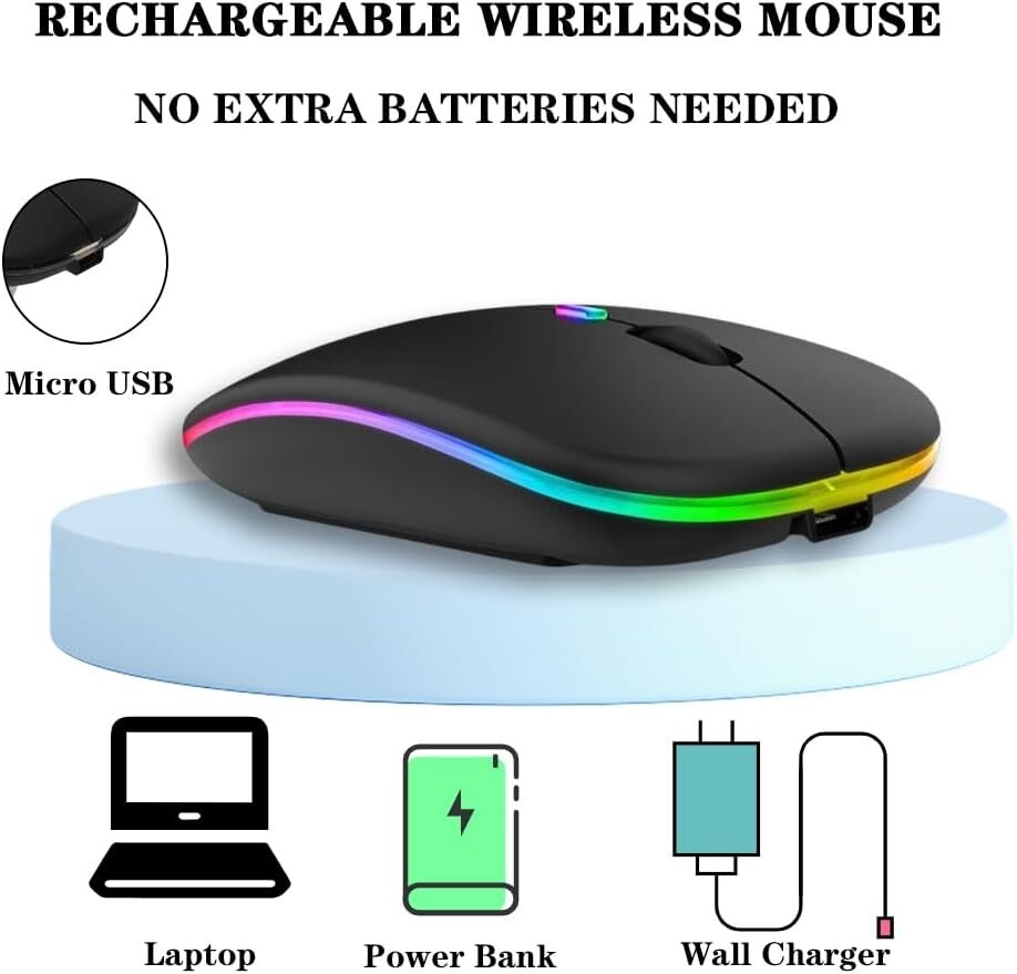 Dual Mode Wireless Mouse (BT 5.0 + 2.4 GHz) – Bluetooth Wireless Mouse works with any laptop, tablet. 2.4GHz mode is suitable for laptops, PCs, or other devices with USB ports.