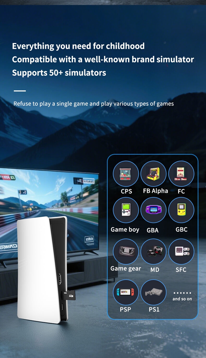 RS5 TV Game Console Dual Stick Wireless Controller Game 20000+64GB Double Joystick 4K Retro Suitable for PC, Android, TV GAME