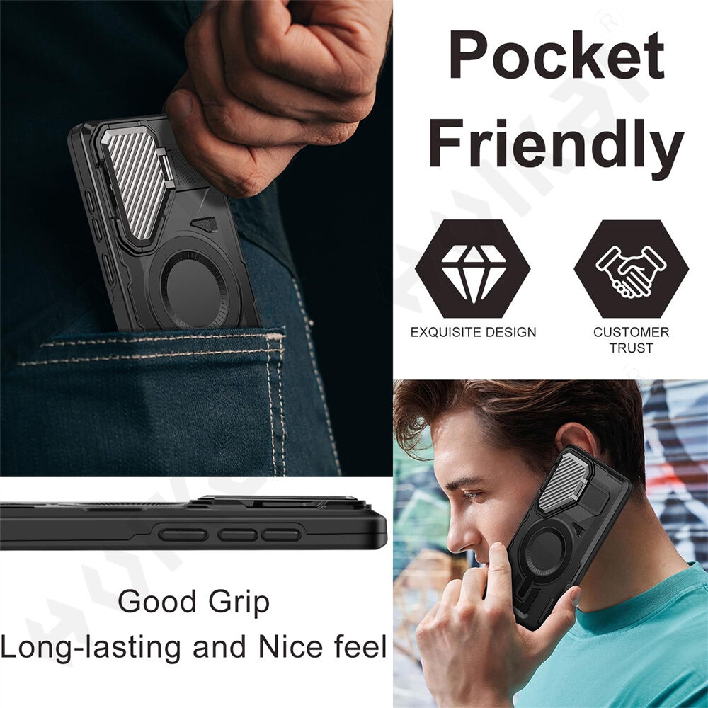 [Rotable Kickstand Design] The metal kickstand can rotate 360° horizontally, making it convenient to watch videos and movies hands-free with desired comfort and stability.Besides, built-in metal magnetic sheet for stable adsorption, which can be directly adsorbed to the magnetic car mount holder. (Not includes the magnetic car mount holder).