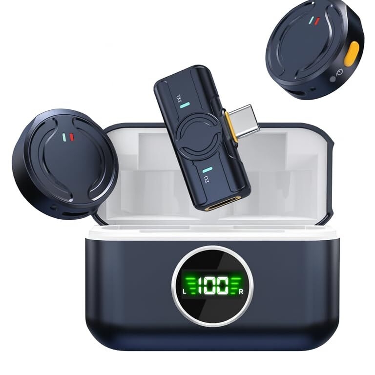 Others: The phone microphone has two fixing methods,clamp and magnetic suction. making it more flexible and convenient to use. TX and RX support a 100FT connection distance, wireless mic offers 7 hours of battery life The charging compartment can charge TX 3 times, allowing you to use them for a long time without worry