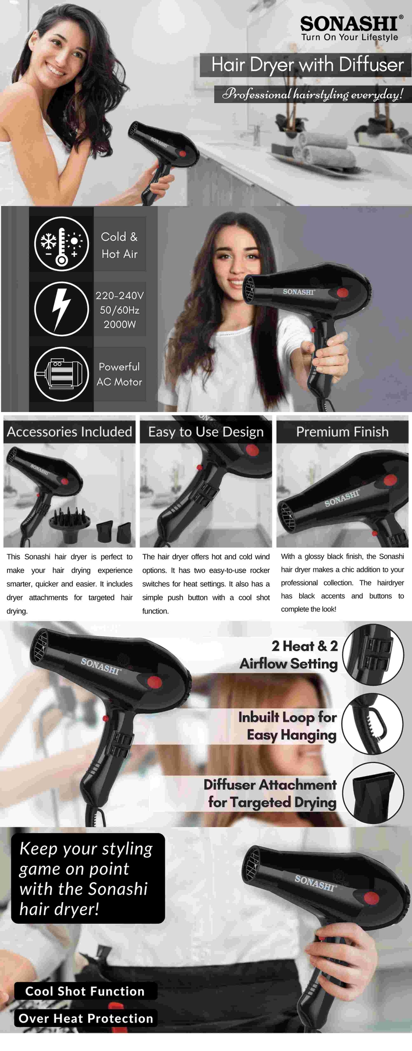 1 pc of Sonashi Hair Dryer with Diffuser SHD-3013