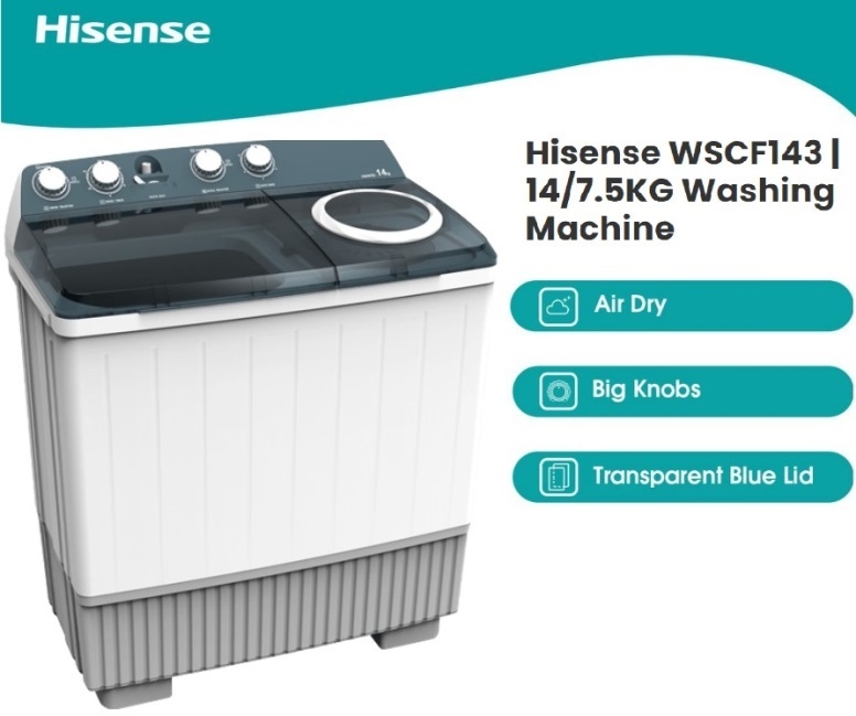 • Description Hisense 14kg Twin Tub Top Loader Washing Machine
