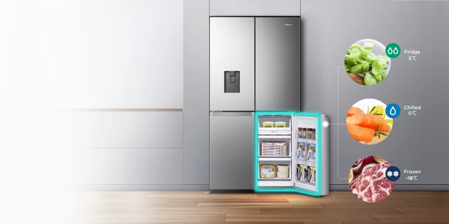 This fridge-freezer is designed to adapt to your needs with three compartments offering flexible temperatures—fridge, freezer, and My Fresh Choice section—each with their own controls. Set the fridge and freezer to the exact temperatures that suit you best.