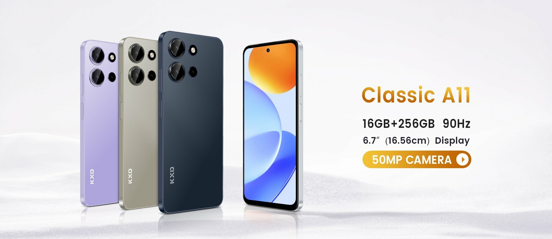 The KXD A11 Smartphone offers a unique experience with its stylish design and robust performance. Featuring a 6.7-inch IPS LCD screen with a resolution of 720x1600 pixels and a 90Hz refresh rate, it ensures smooth and clear visuals. Powered by a MediaTek Helio G37 processor and Android 13, the phone guarantees excellent performance and a seamless user interface.