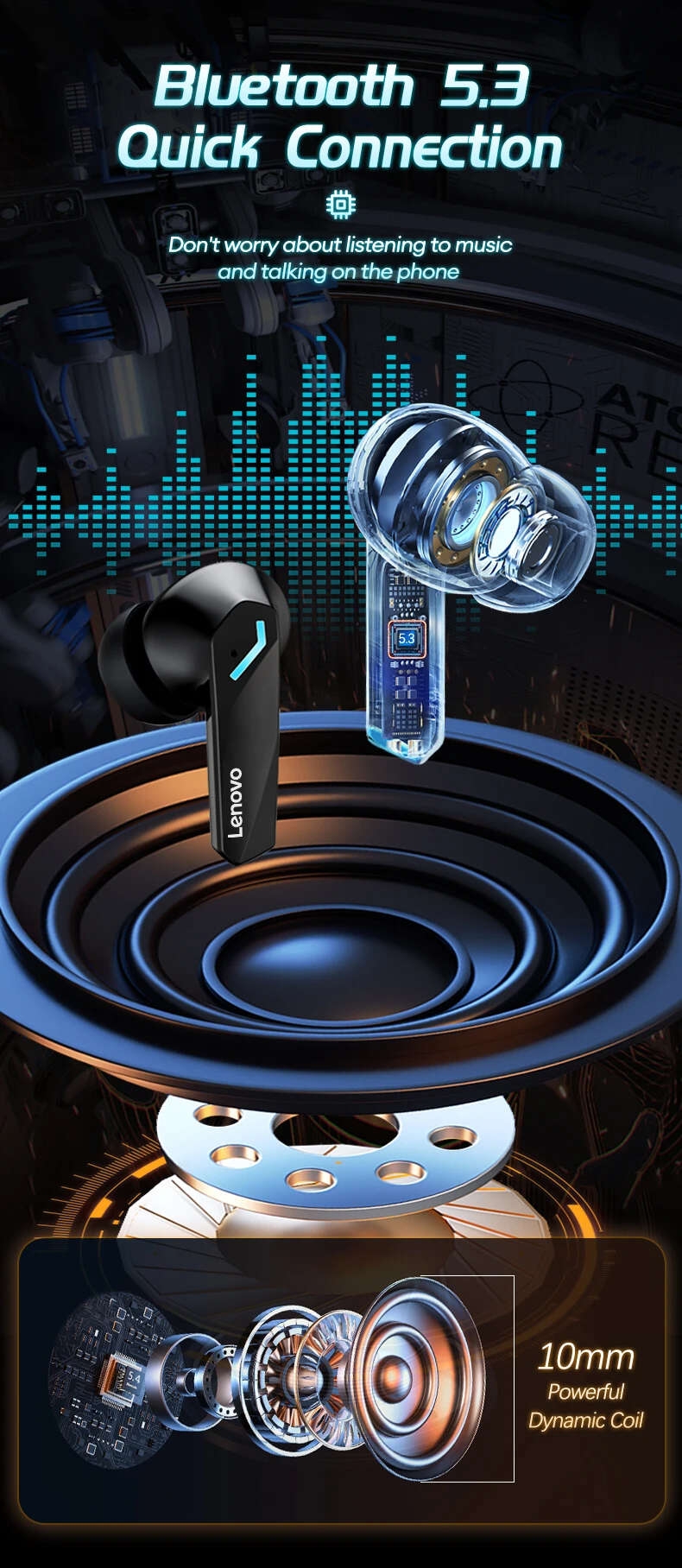 Lenovo's newest design gaming earphones in 2022.Dual mode for music/game, custom gaming chip, low latency for gaming, comfortable to wear, AAC HD audio decoding